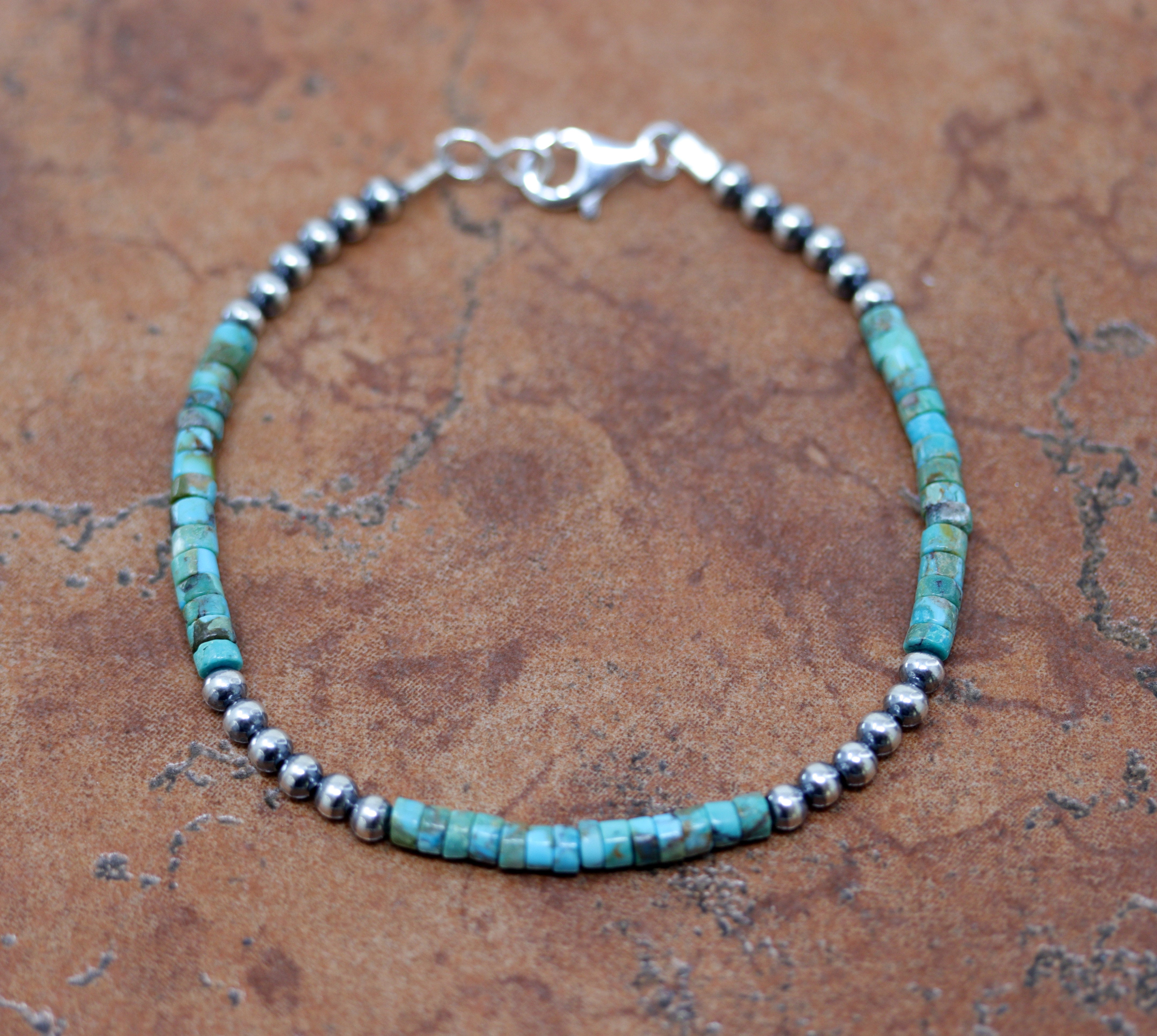 9" Desert Pearl Silver Turquoise Heishi Mens Bracelet