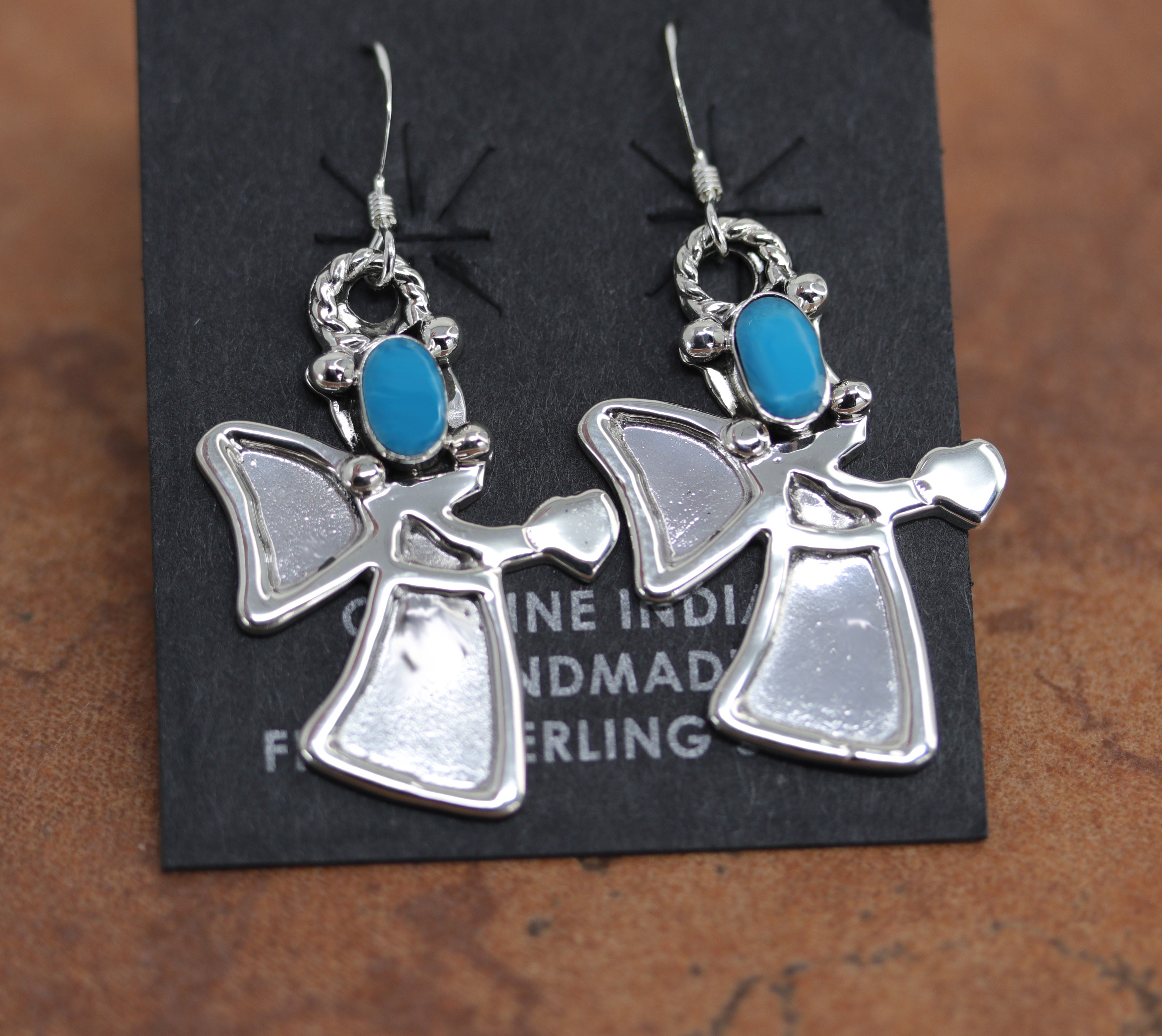 Beautiful Navajo earrings by S Johnson. They are made from sterling silver and turquoise. Each earring is 1 5/8" in length including the hook and 7/8" in width.