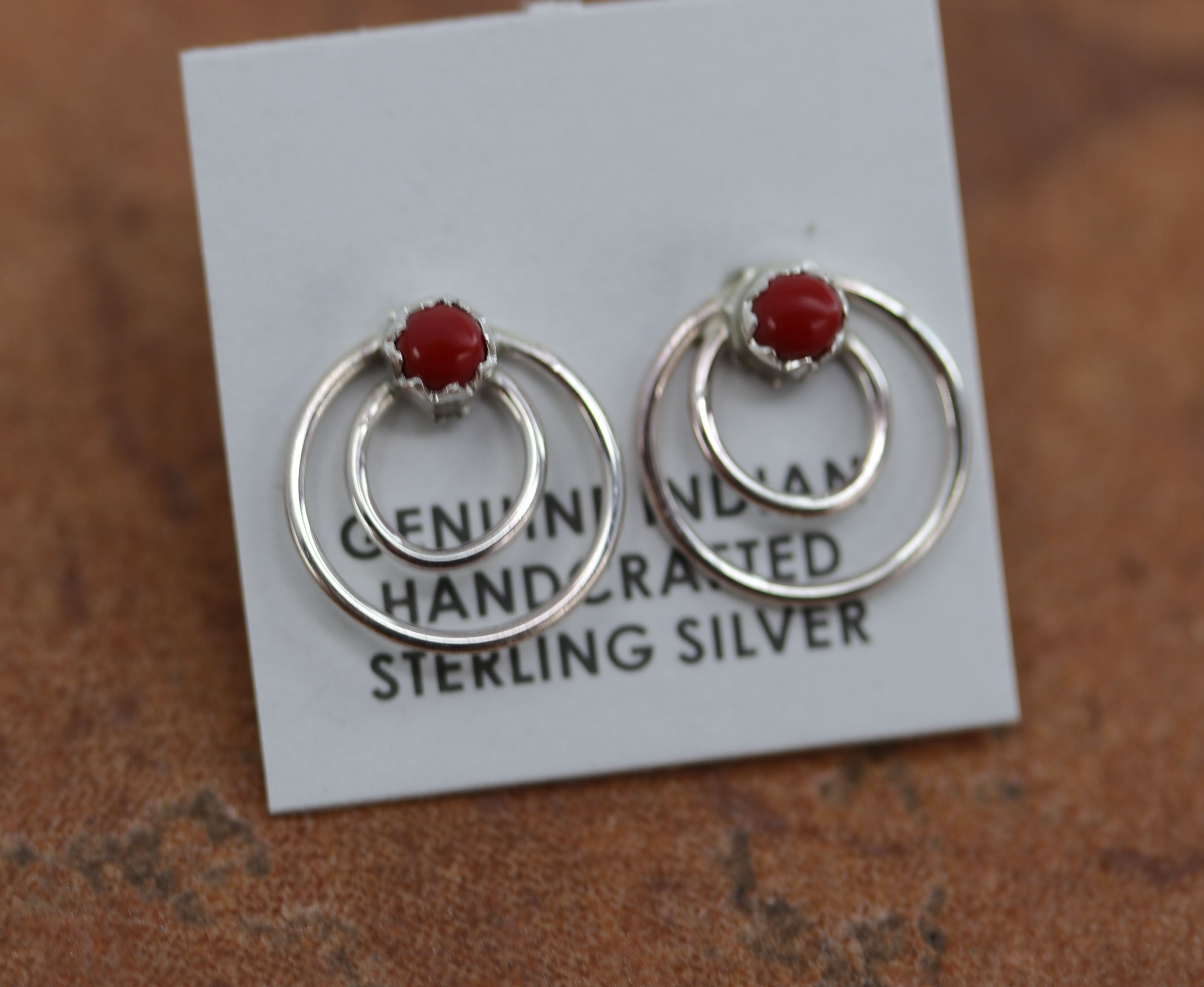 Navajo Silver Circle of Life Coral Earrings