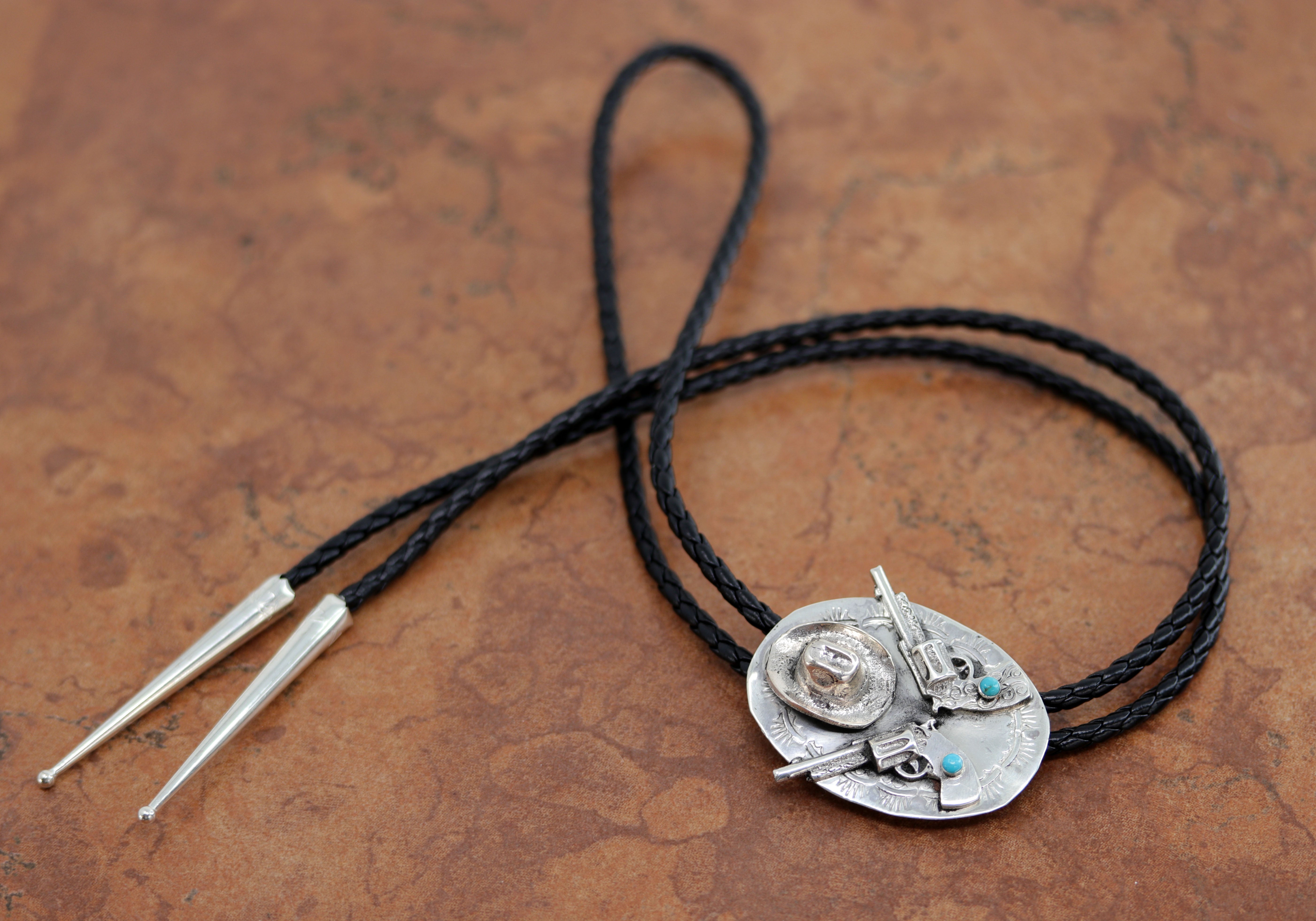 Navajo Silver Cowboy Hat Turquoise Bolo Tie
