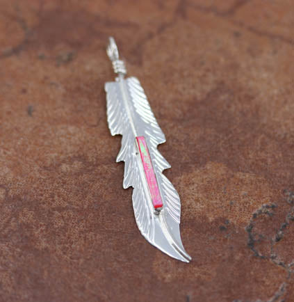 Navajo Silver Created Opal Feather Pendant