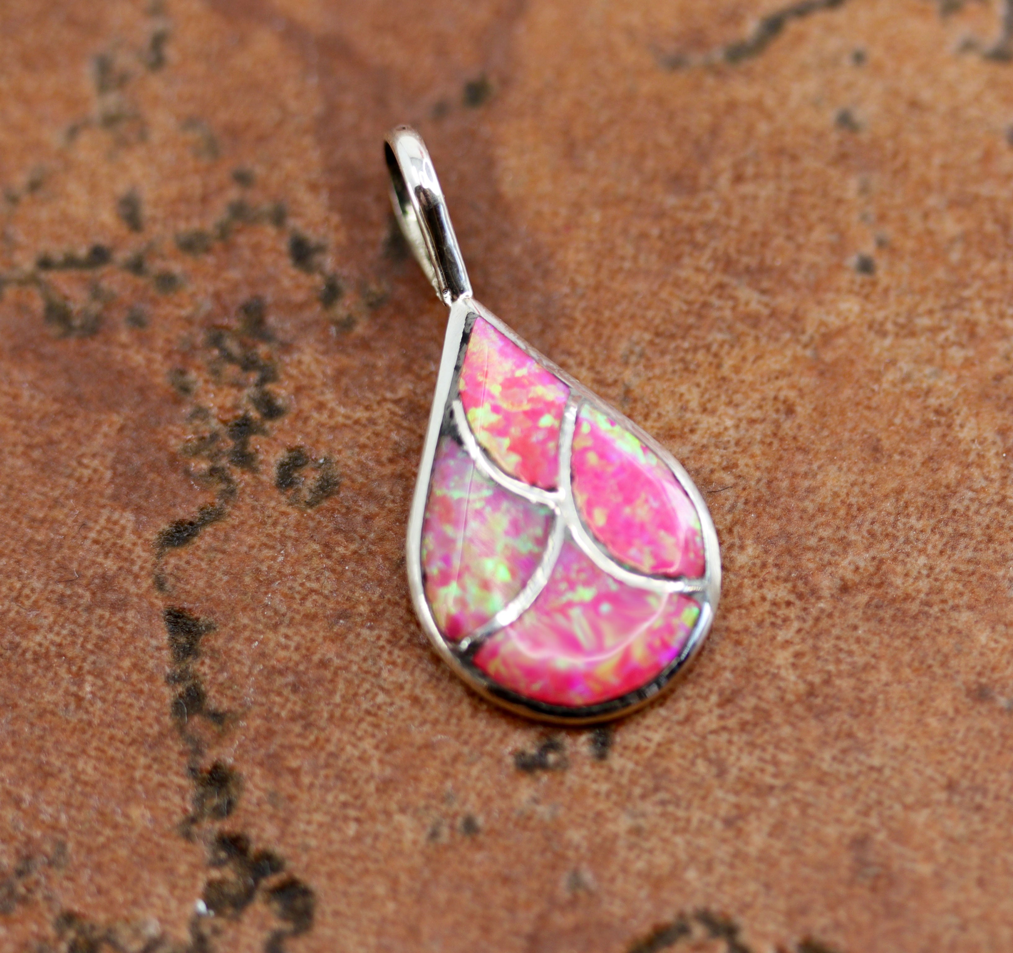 A beautiful pendant made from sterling silver and created opal. The pendant measures 1" by 1/2".
