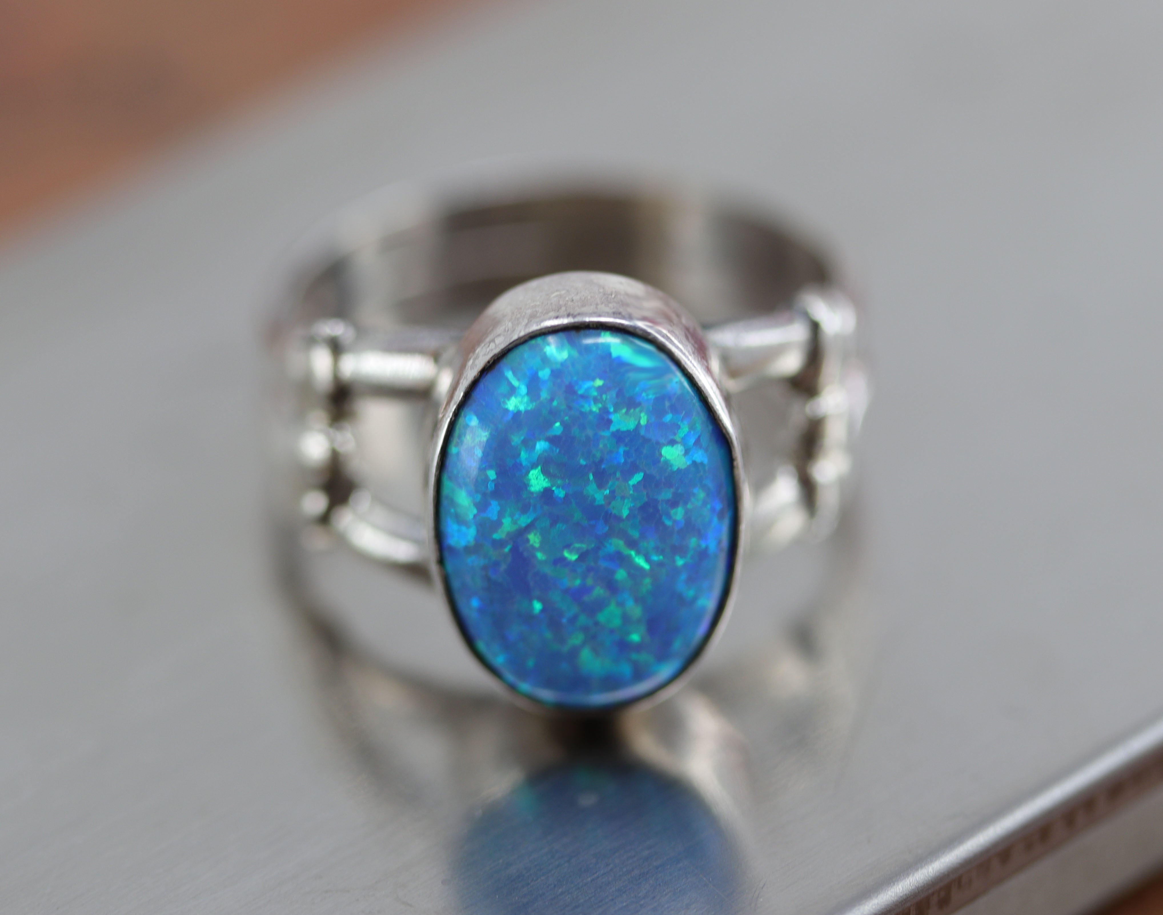 A lovely Navajo Native American ring. It is made from sterling silver and created opal. The ring size 8 1/2 and it is 5/8" in length.