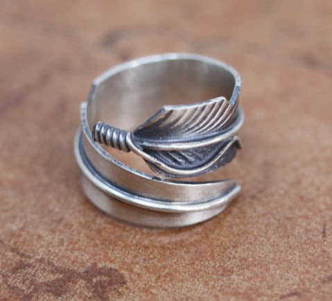 Navajo Native American ring. It is made from sterling silver. The size is adjustable so it can fit sizes 6-9, and it is 3/4" at the widest point.