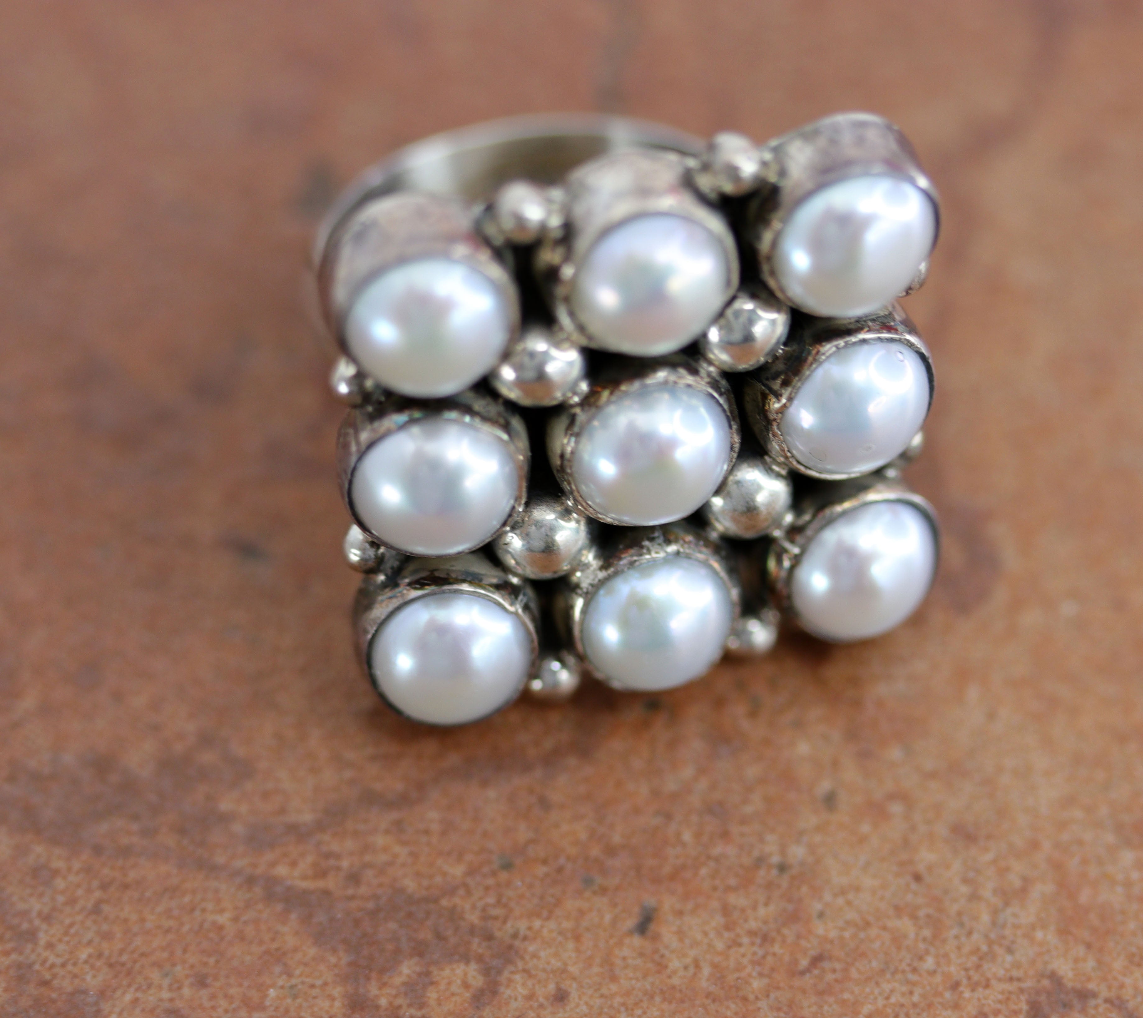 Navajo Silver Freshwater Pearl Ring Size 6-8 by Nakai