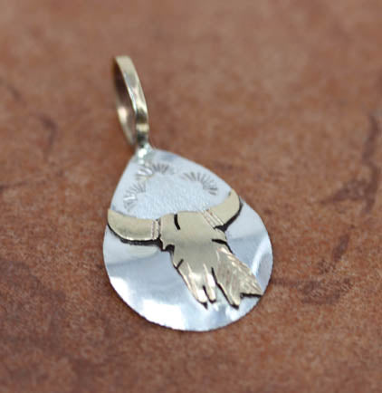 An authentic Native American pendant. It is made from sterling silver and gold overlay. The pendant is 1 3/8" in length (including the bail) and 3/4" at the widest point.