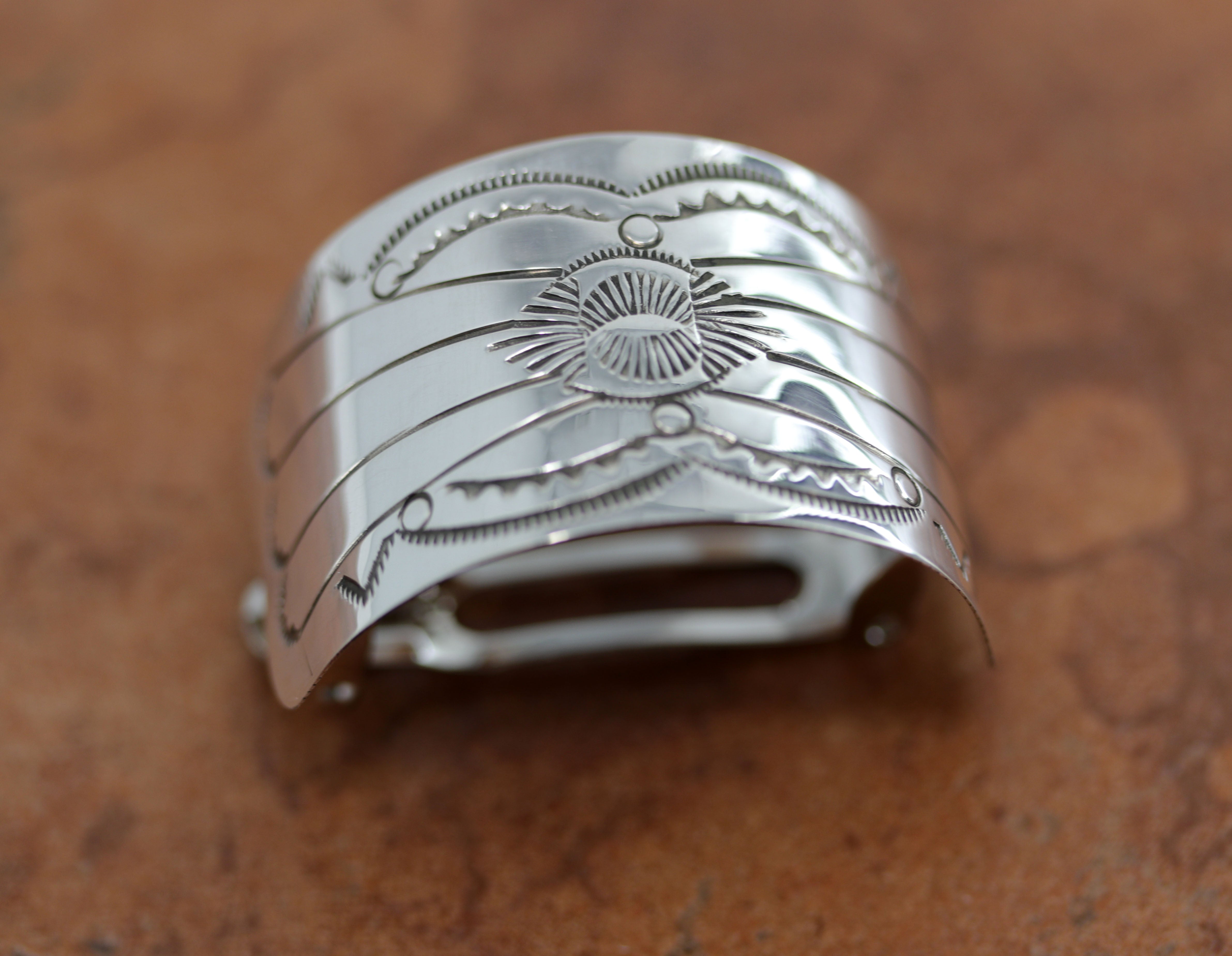 Lovely Navajo Native American Barrette made by Joanne Silver from sterling silver. It is 1 1/4" long, and about 1 3/4" wide.