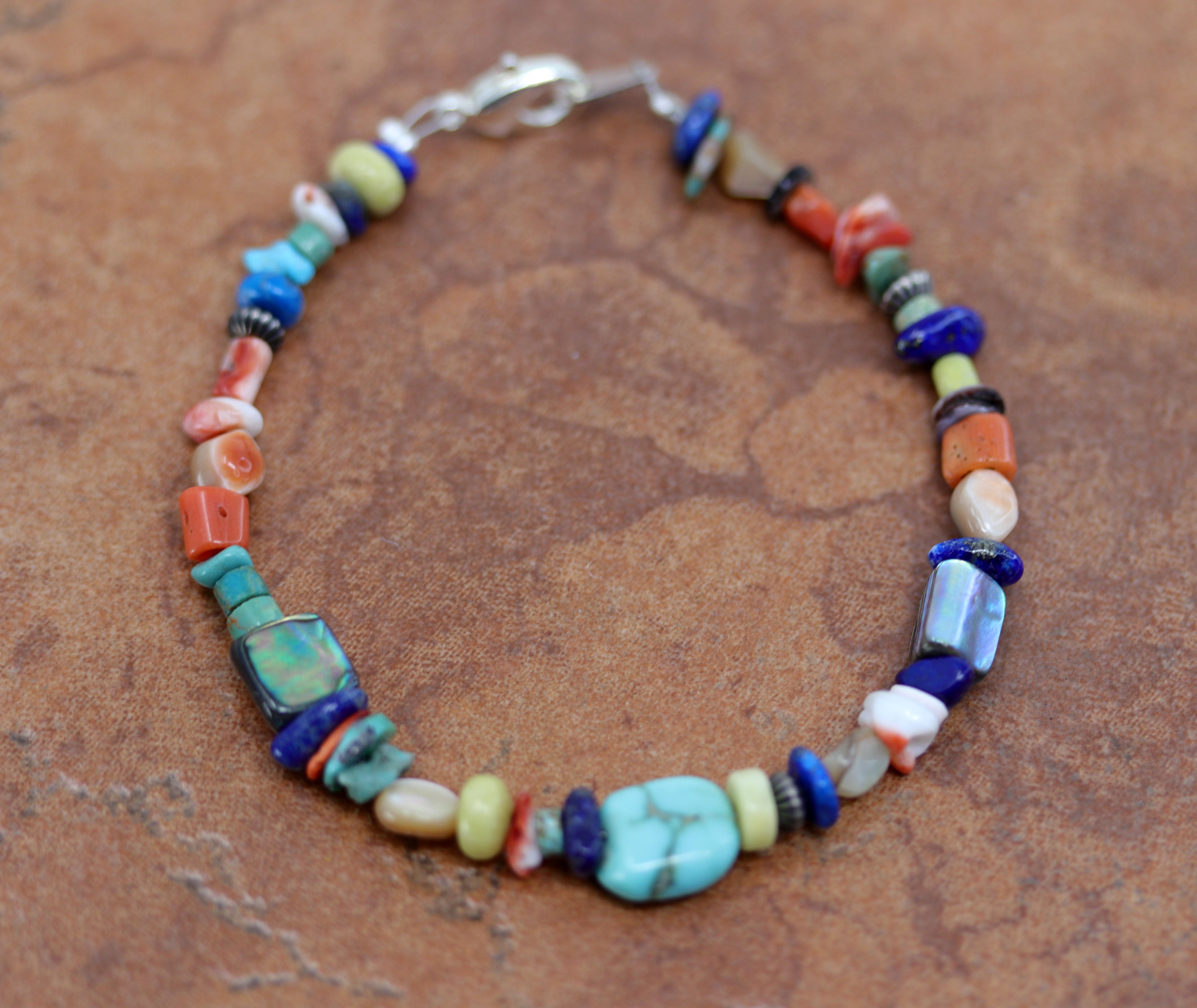 Navajo Silver Nugget Gemstone Beaded Bracelet