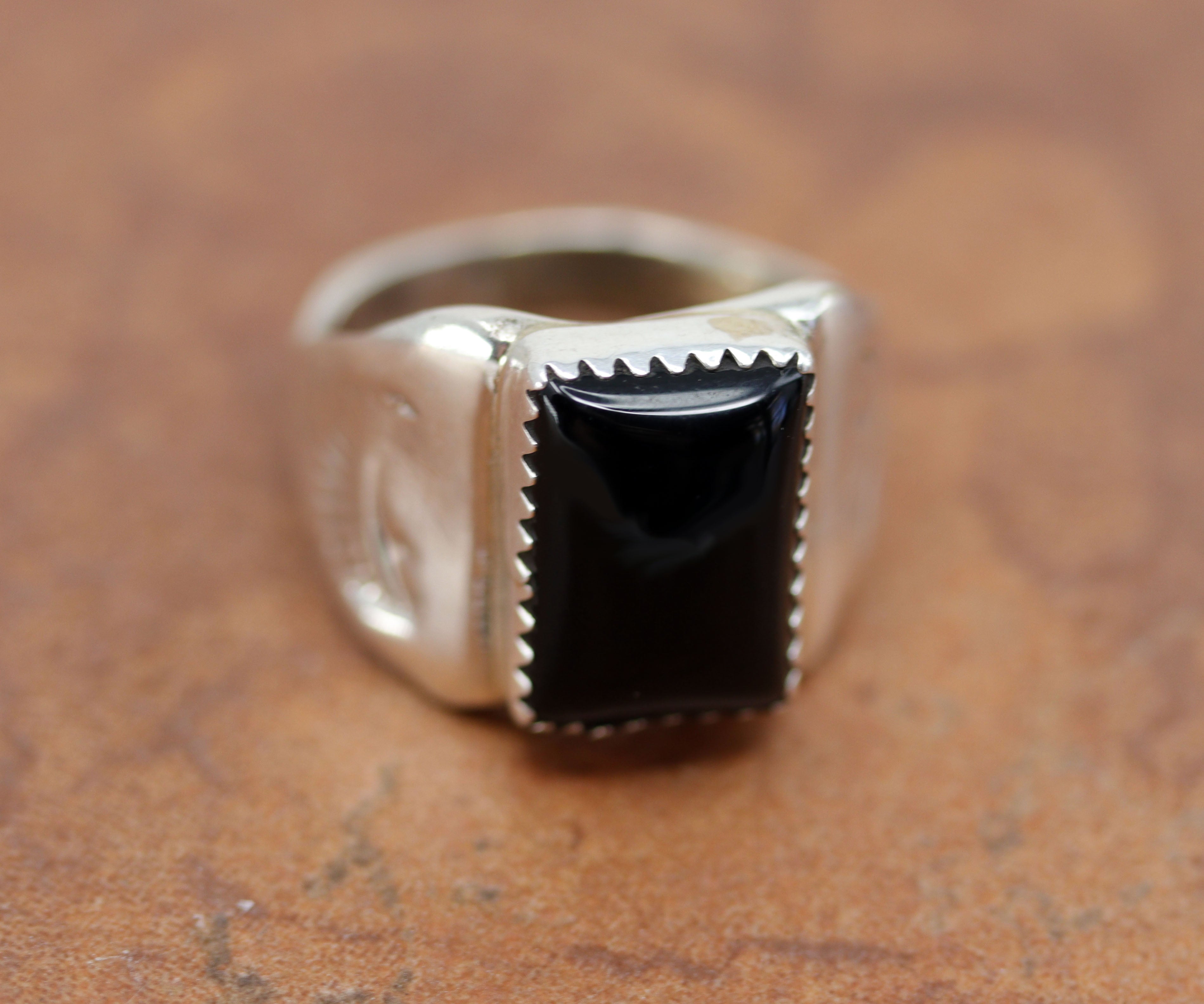 Navajo Silver Onyx Ring Size 7 1/2