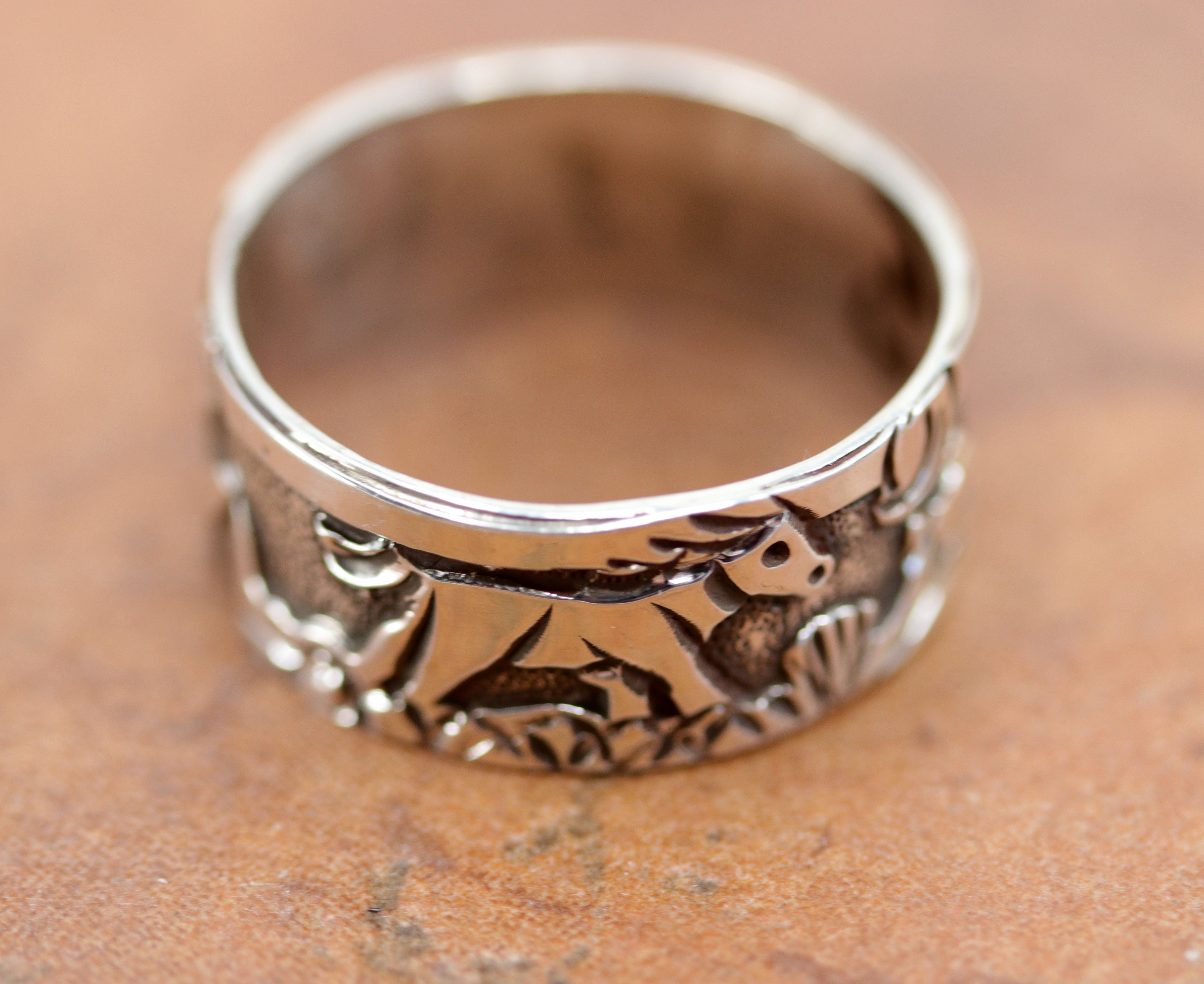 Beautiful Navajo Native American ring. It is made from sterling silver. The ring size 12 1/2 and it is 3/8" in length.