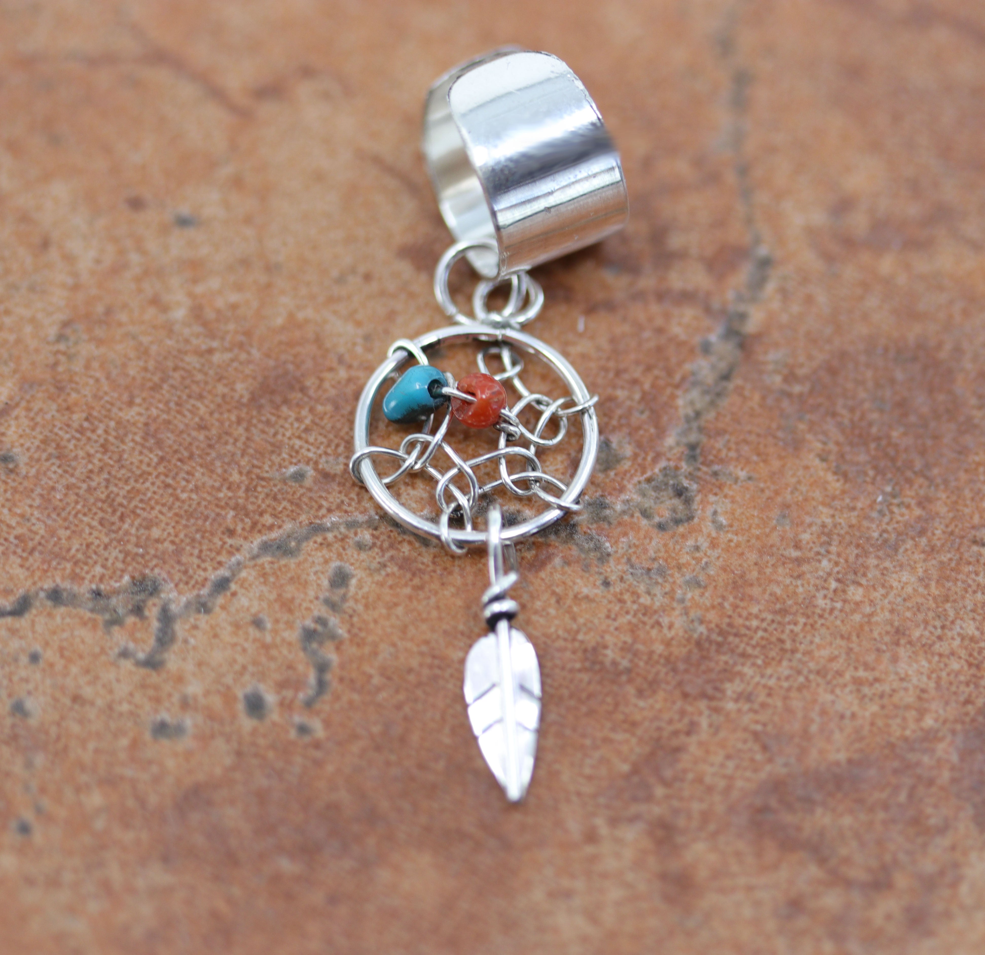 Navajo Silver Turquoise Dream Catcher Ear Cuff