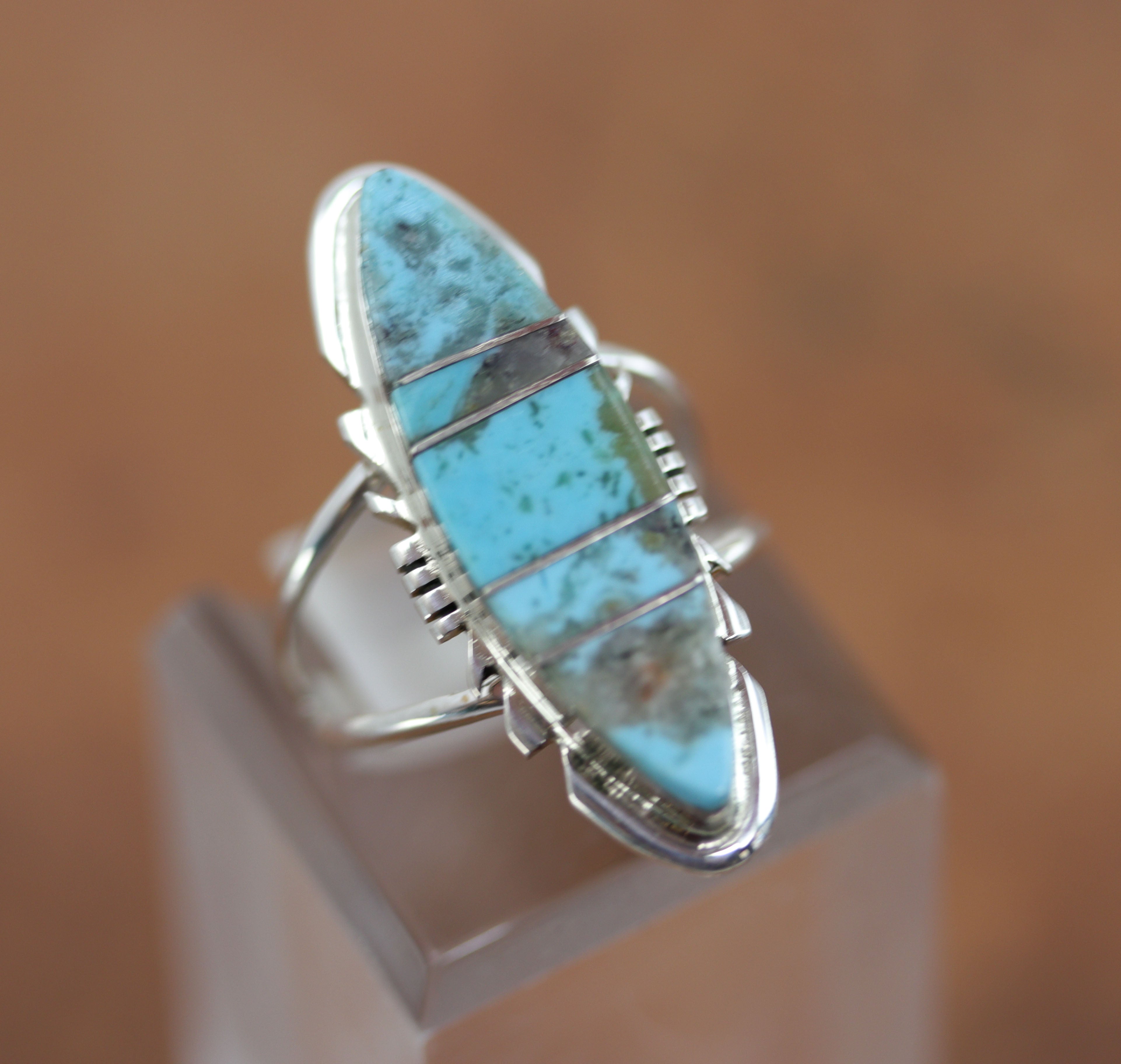 Beautiful Navajo Native American ring. It is made from sterling silver and turquoise. The ring size 9 and it is 1 1/2" in length.