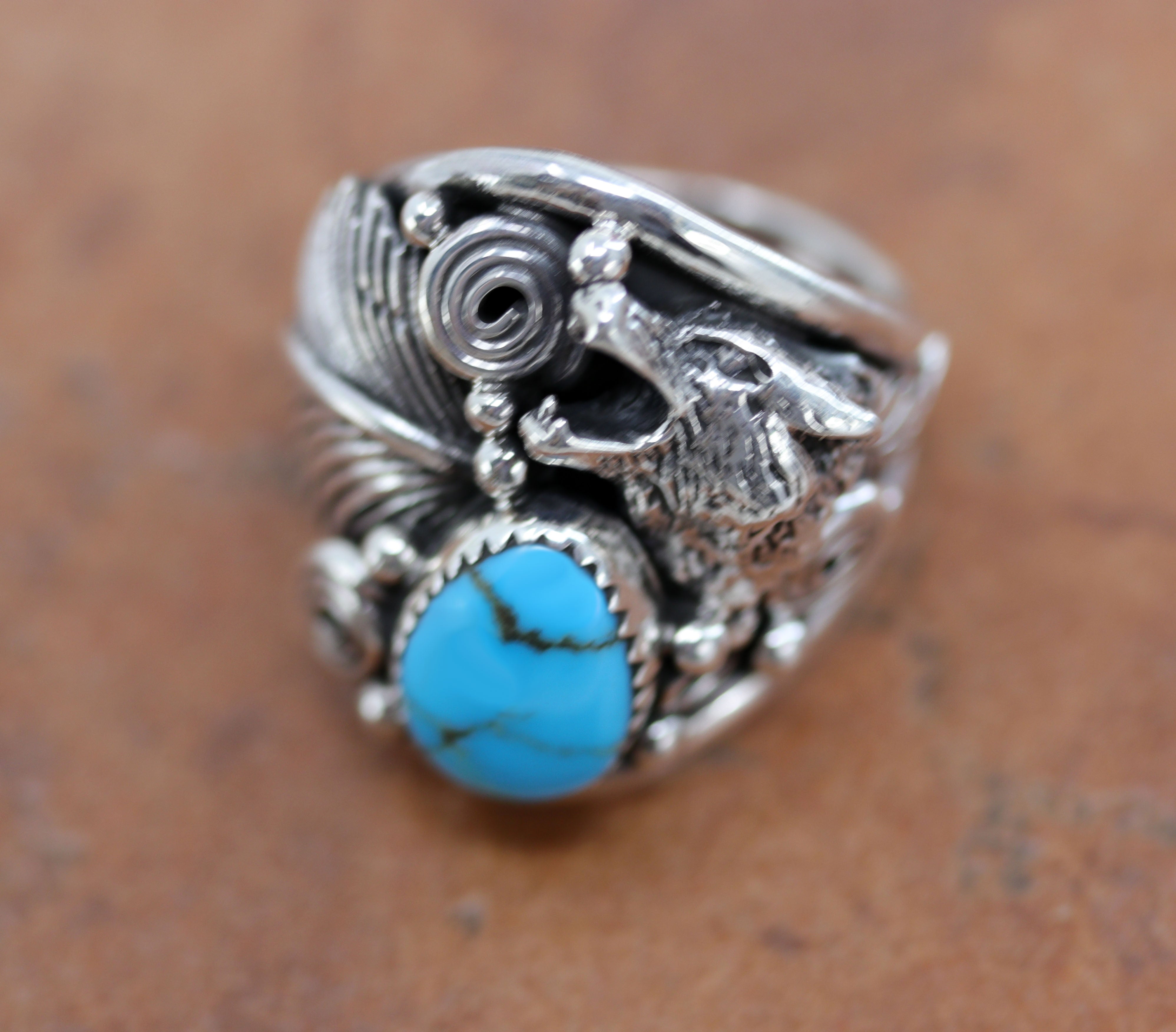 Navajo Silver Turquoise Wolf Ring Size 10 1/2