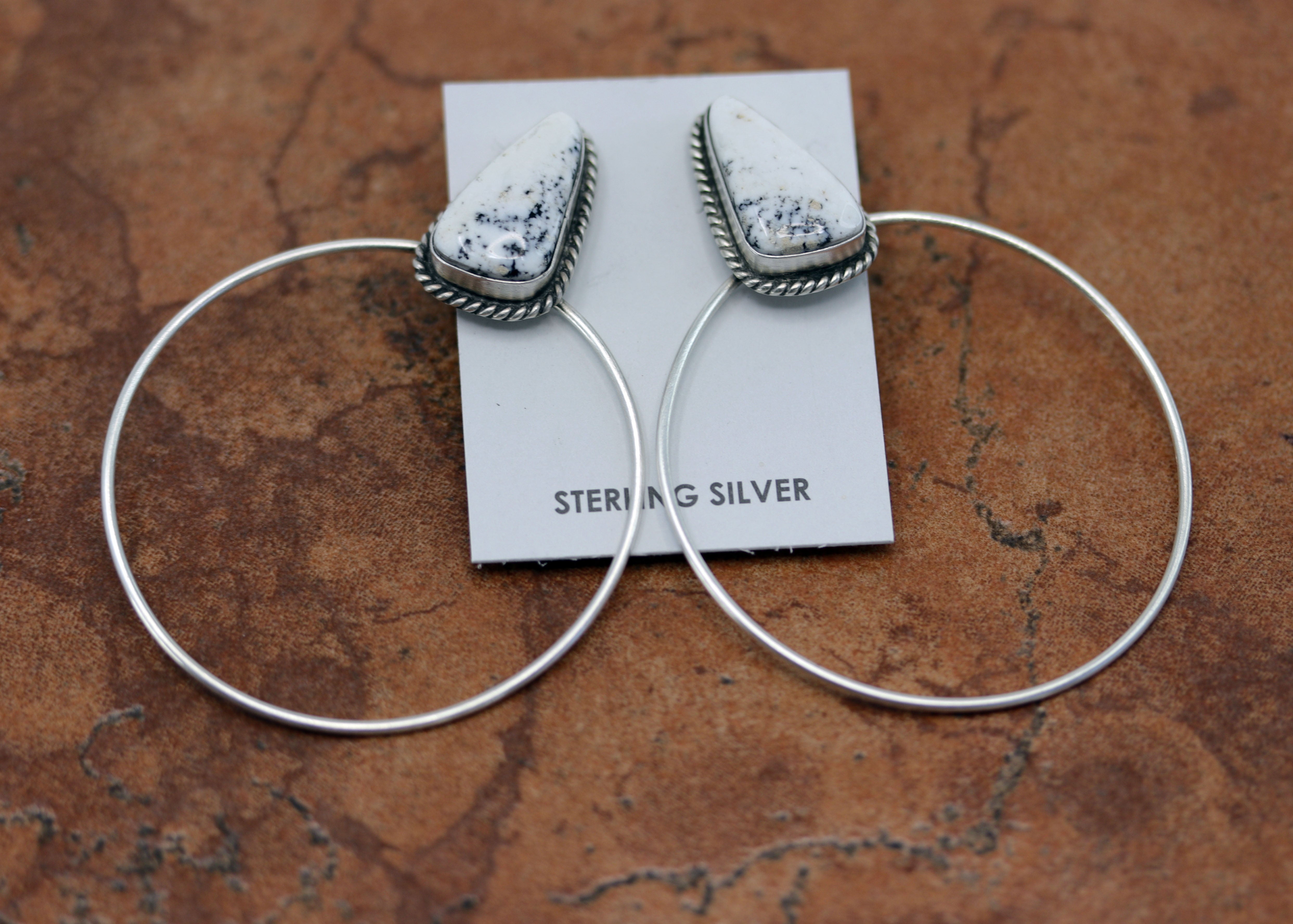 Navajo Silver White Buffalo Hoop Earrings