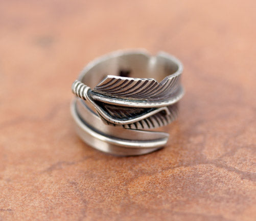 Navajo Silver Wrap Around Feather Ring Size 8-10