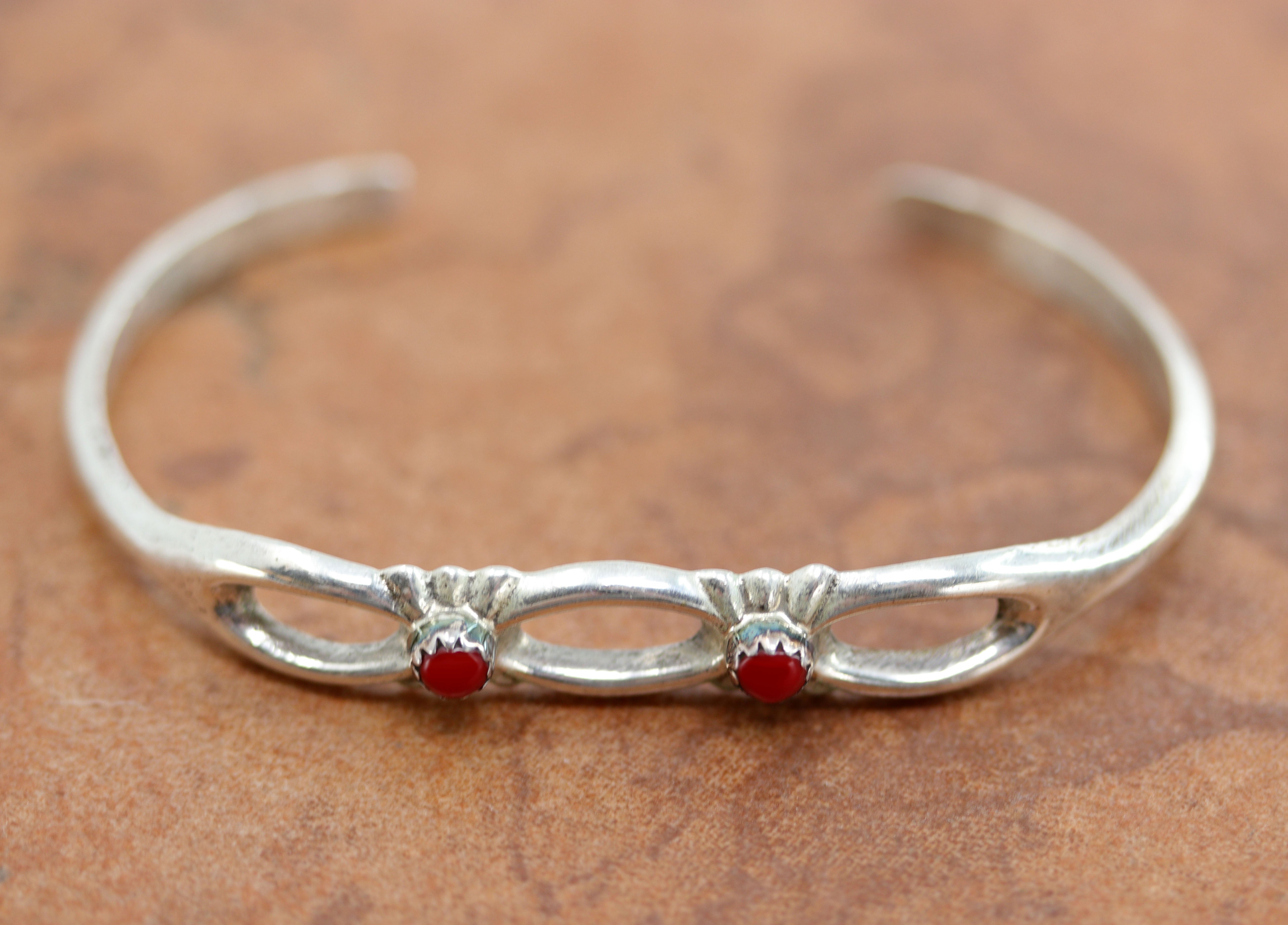 Navajo Sterling Coral Cuff Bracelet