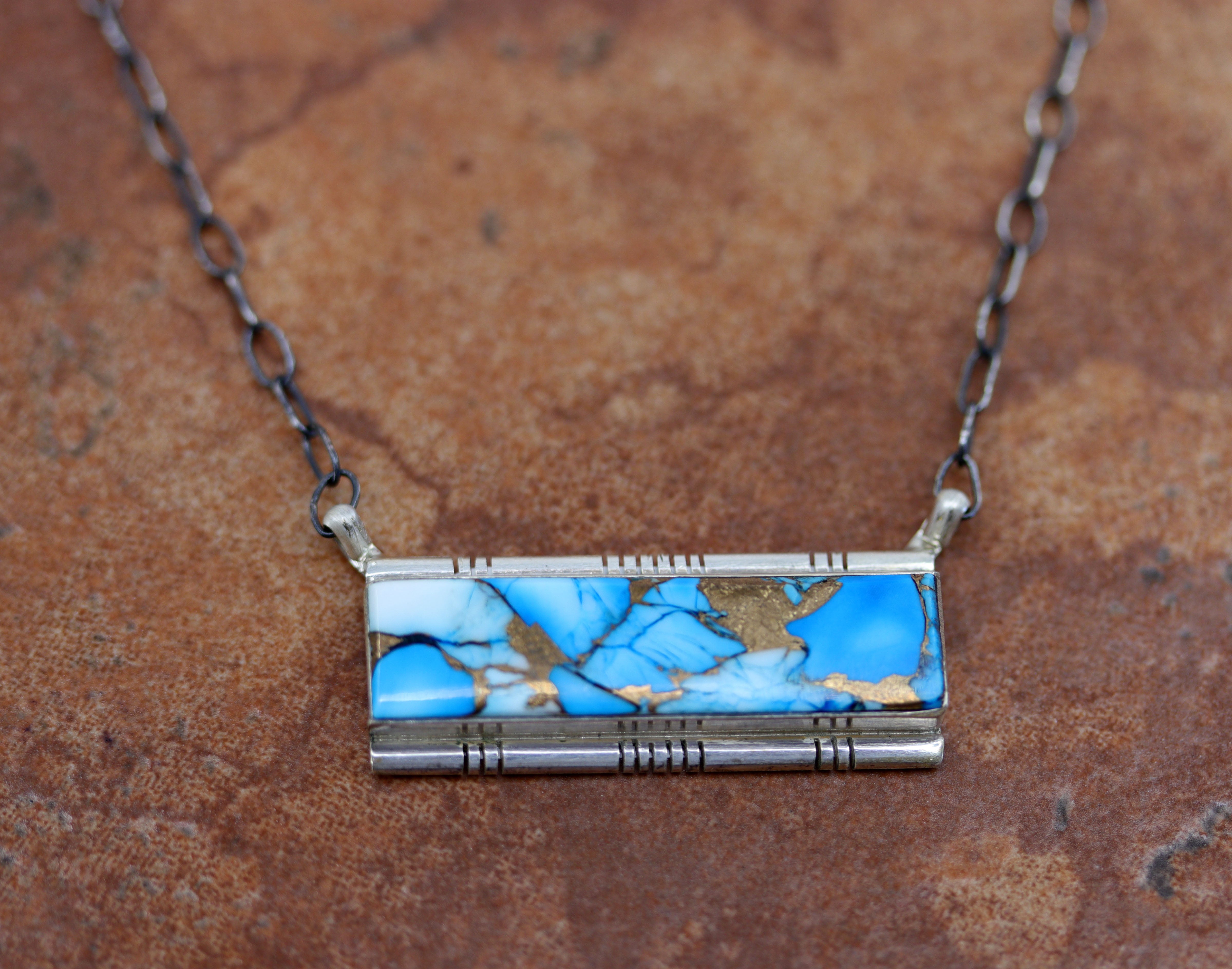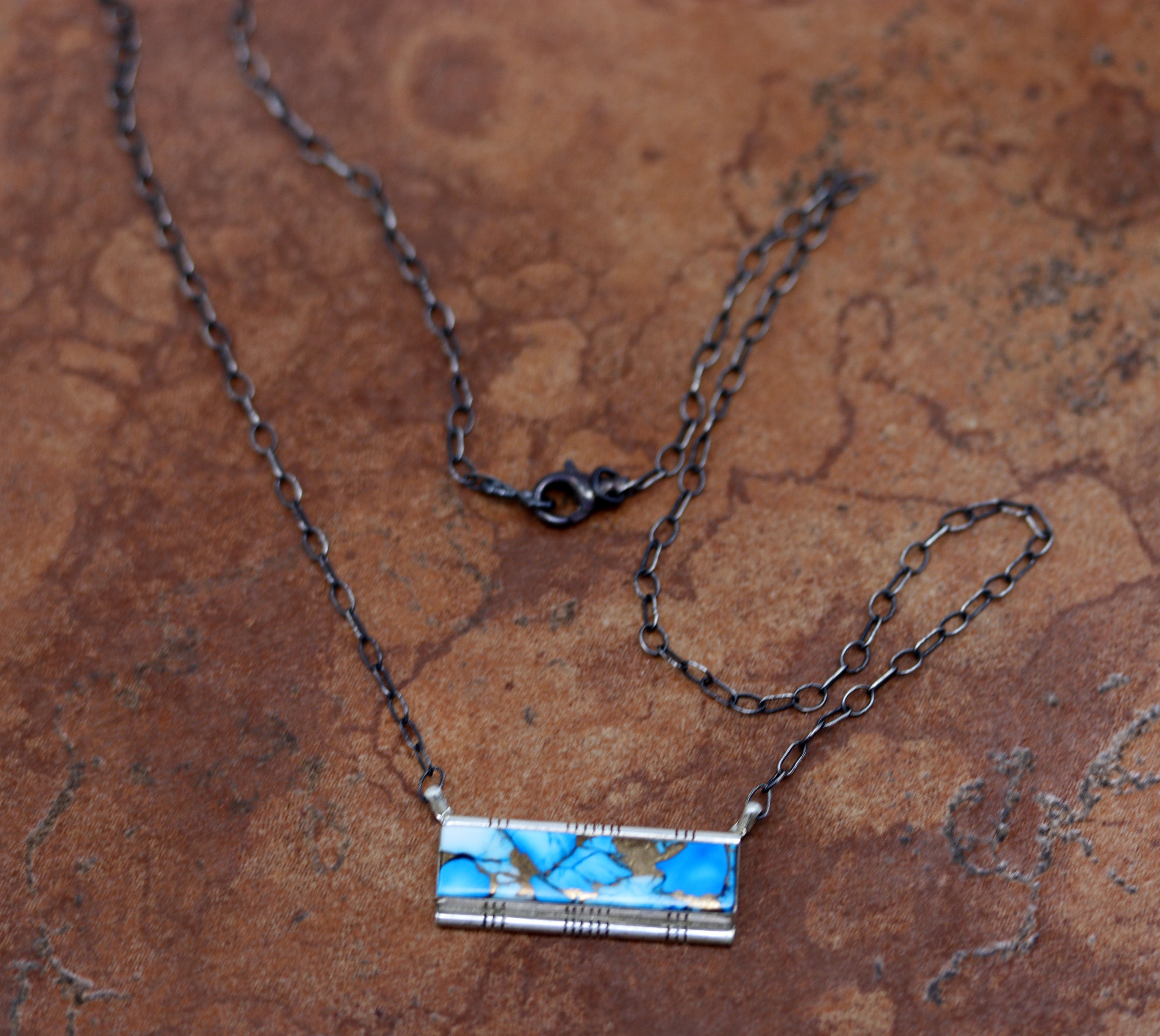 Navajo Sterling Ice Blue Dahlia Turquoise Bar Necklace