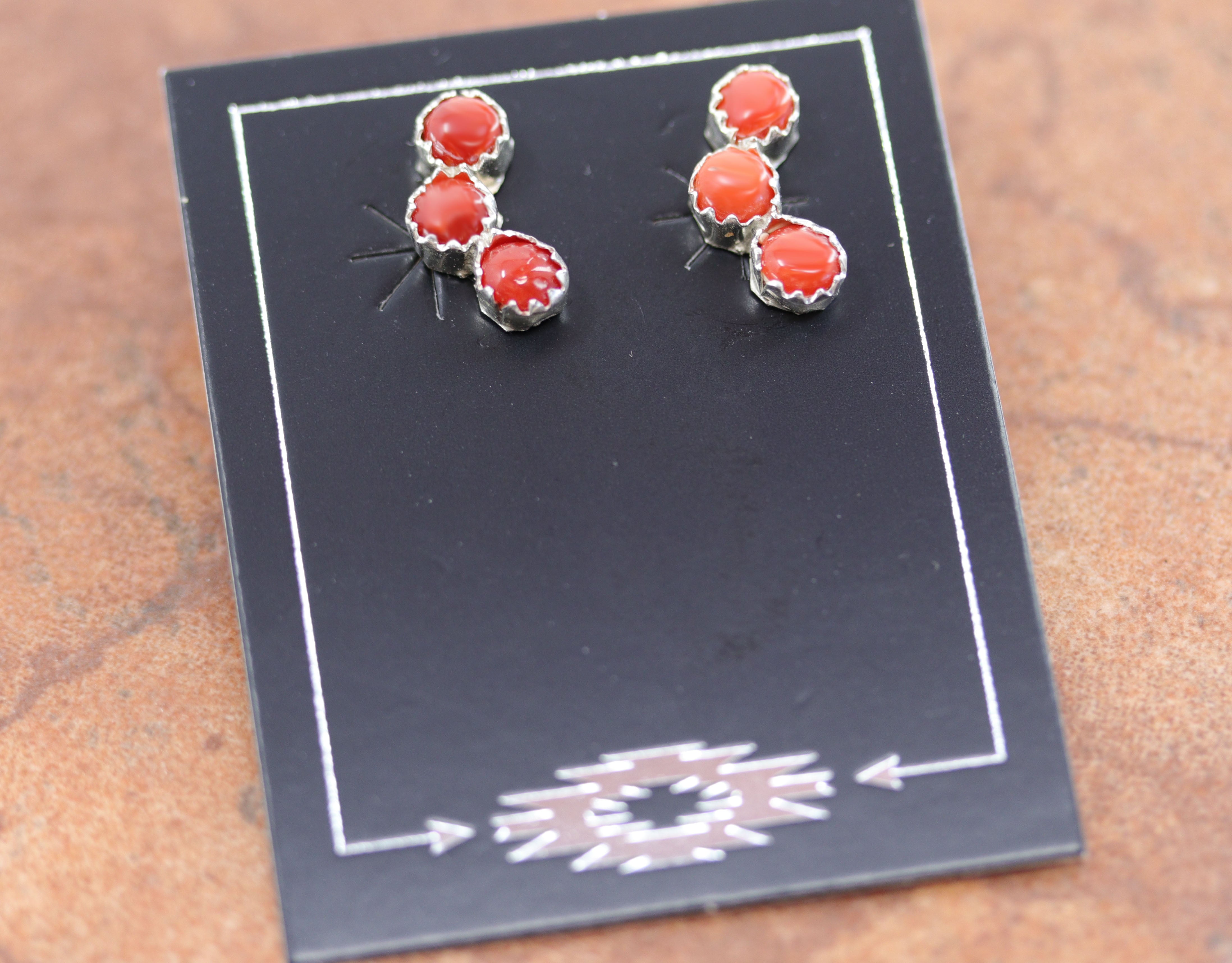Beautiful Navajo earrings by Sylvya Chee. They are made from sterling silver and coral. The earrings are 5/8" in length and 3/16" in width.
