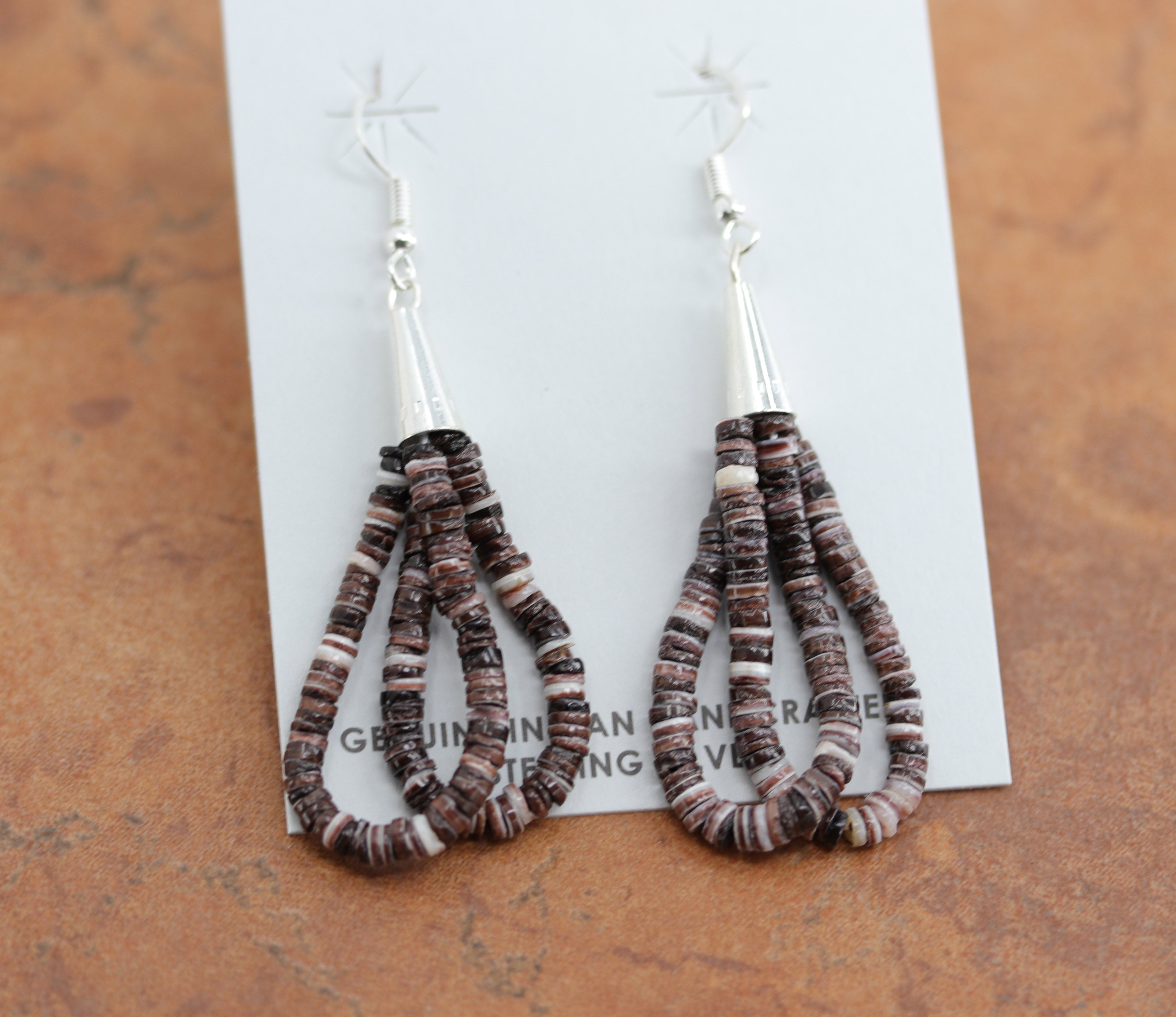 Beautiful Navajo Native American silver earrings. They are made from sterling silver and heishi. The earrings about 2 3/4" long including the hook.