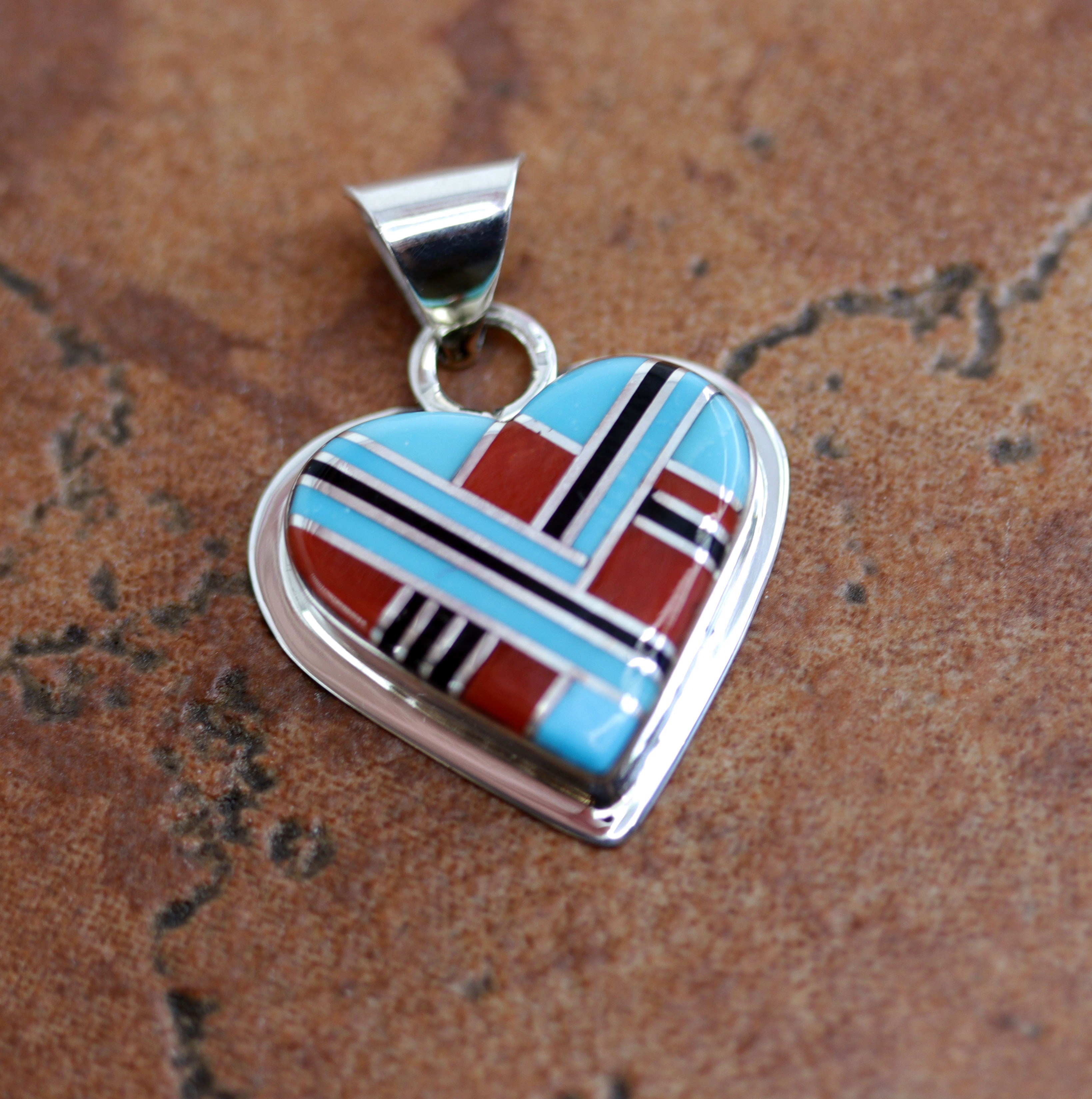 Navajo Sterling Silver Multi-Stone Heart Pendant