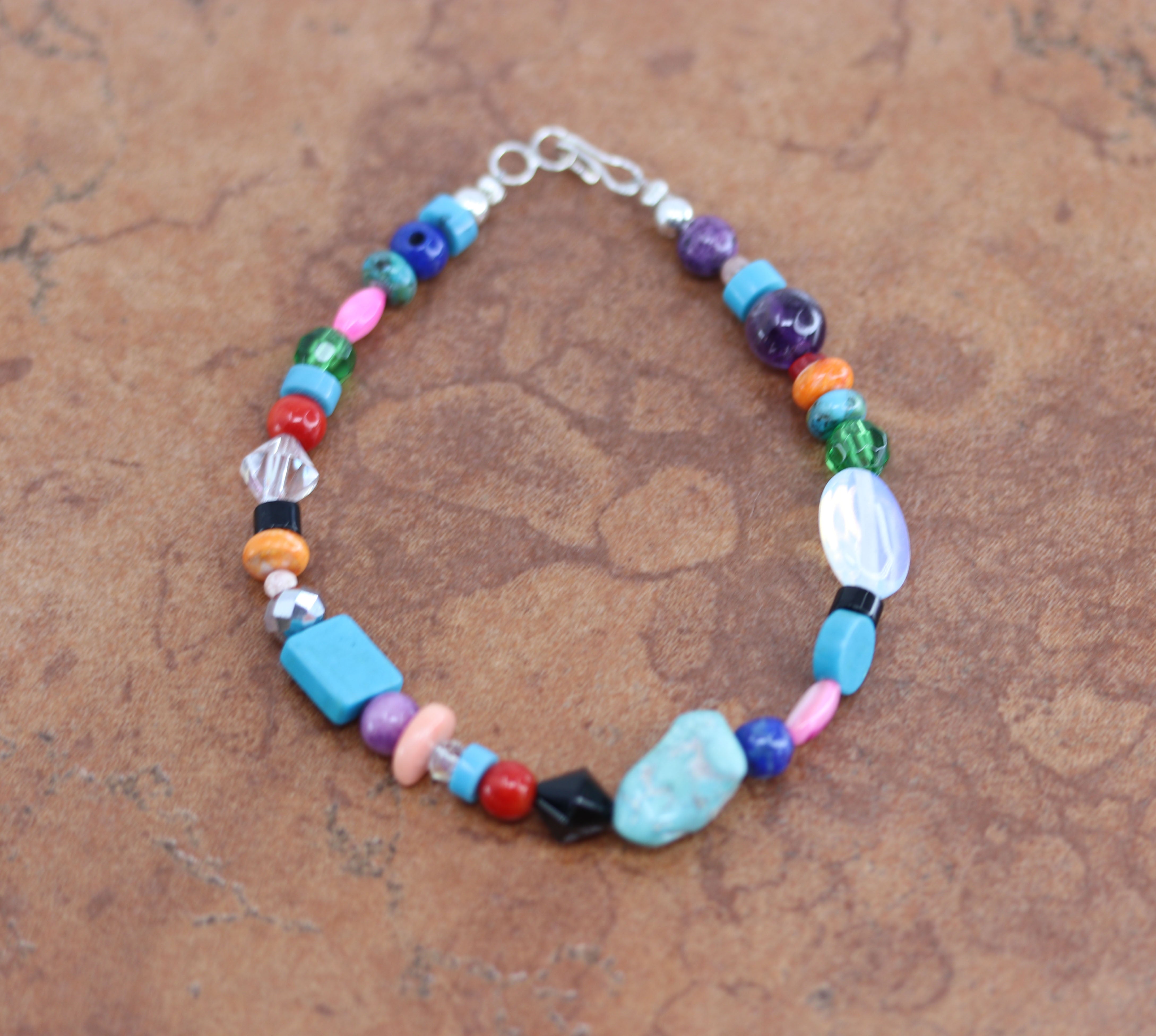 A beautiful Navajo Native American Bracelet. It is about 8" from end to end and the width is 1/2" at the widest point.