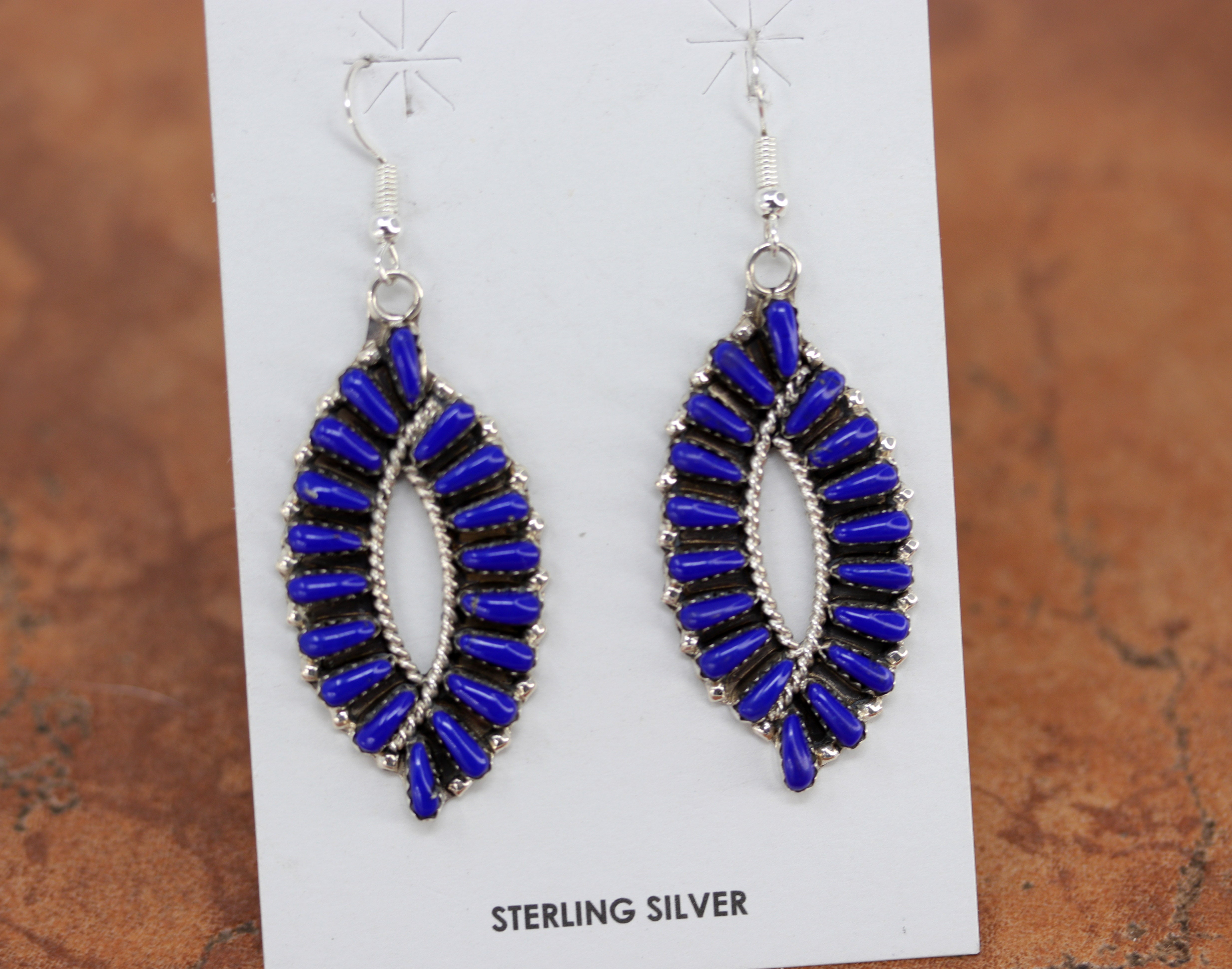 Authentic and beautiful Navajo Native American cluster earrings. They are made from sterling silver and man made multi-stone inlay. The earrings measure 2 1/2" in length including the hook and 1" in width.