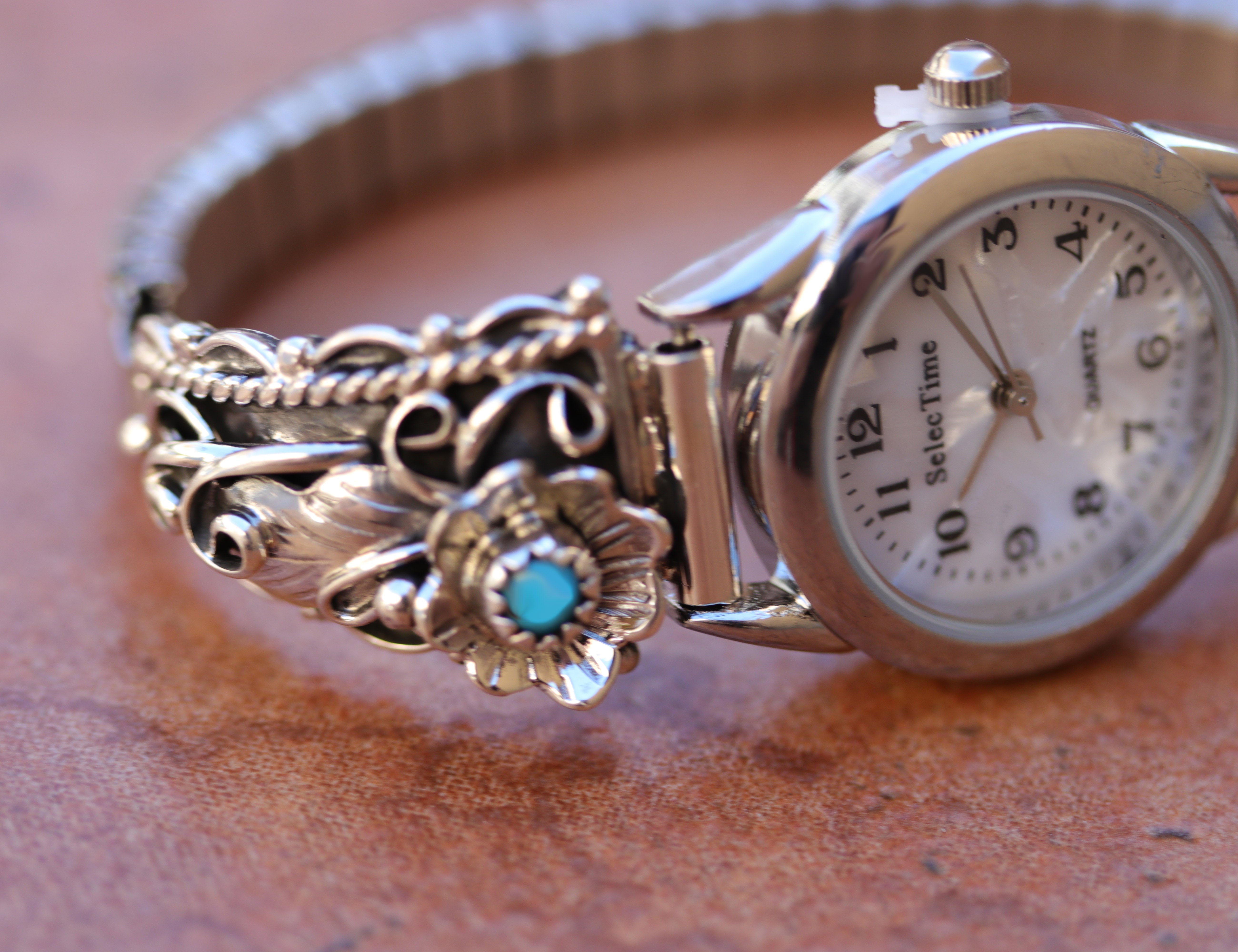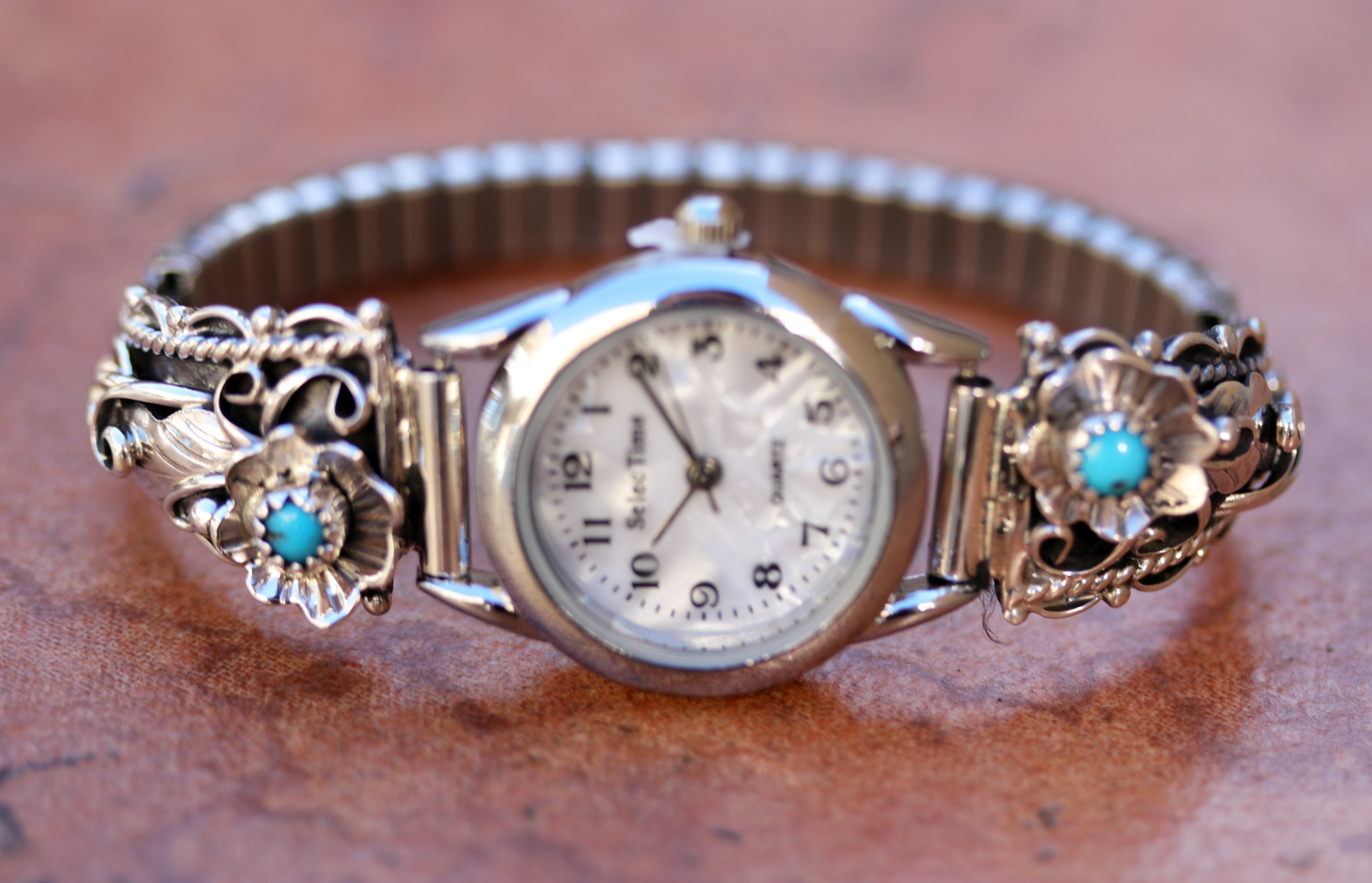 Navajo Sterling Silver Turquoise Floral Ladies Watch