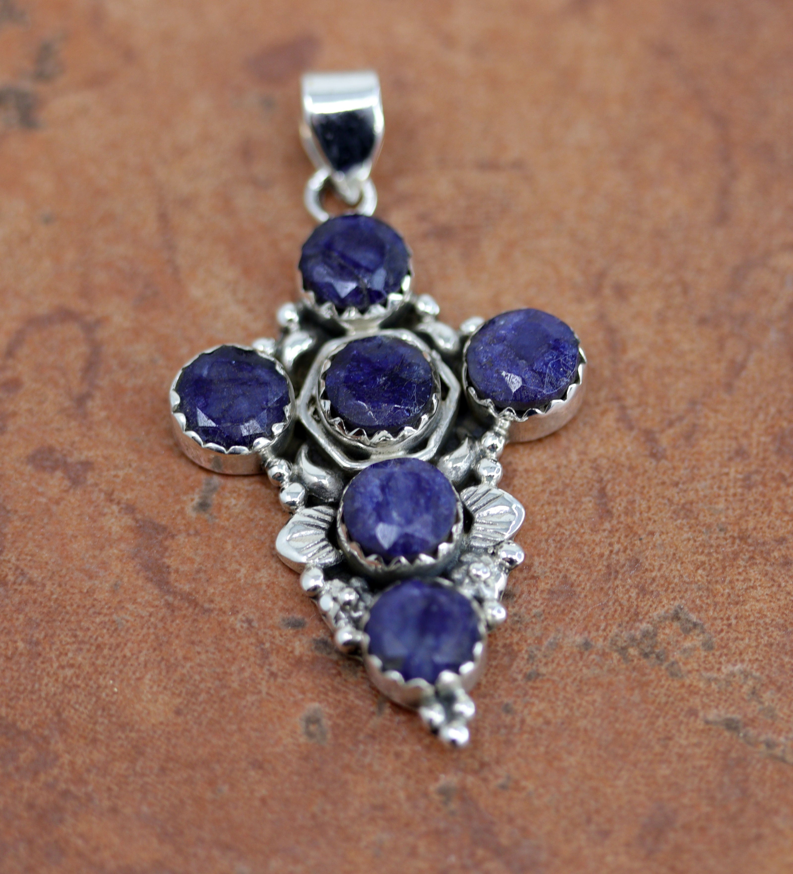 Silver Sapphire Cross Pendant
