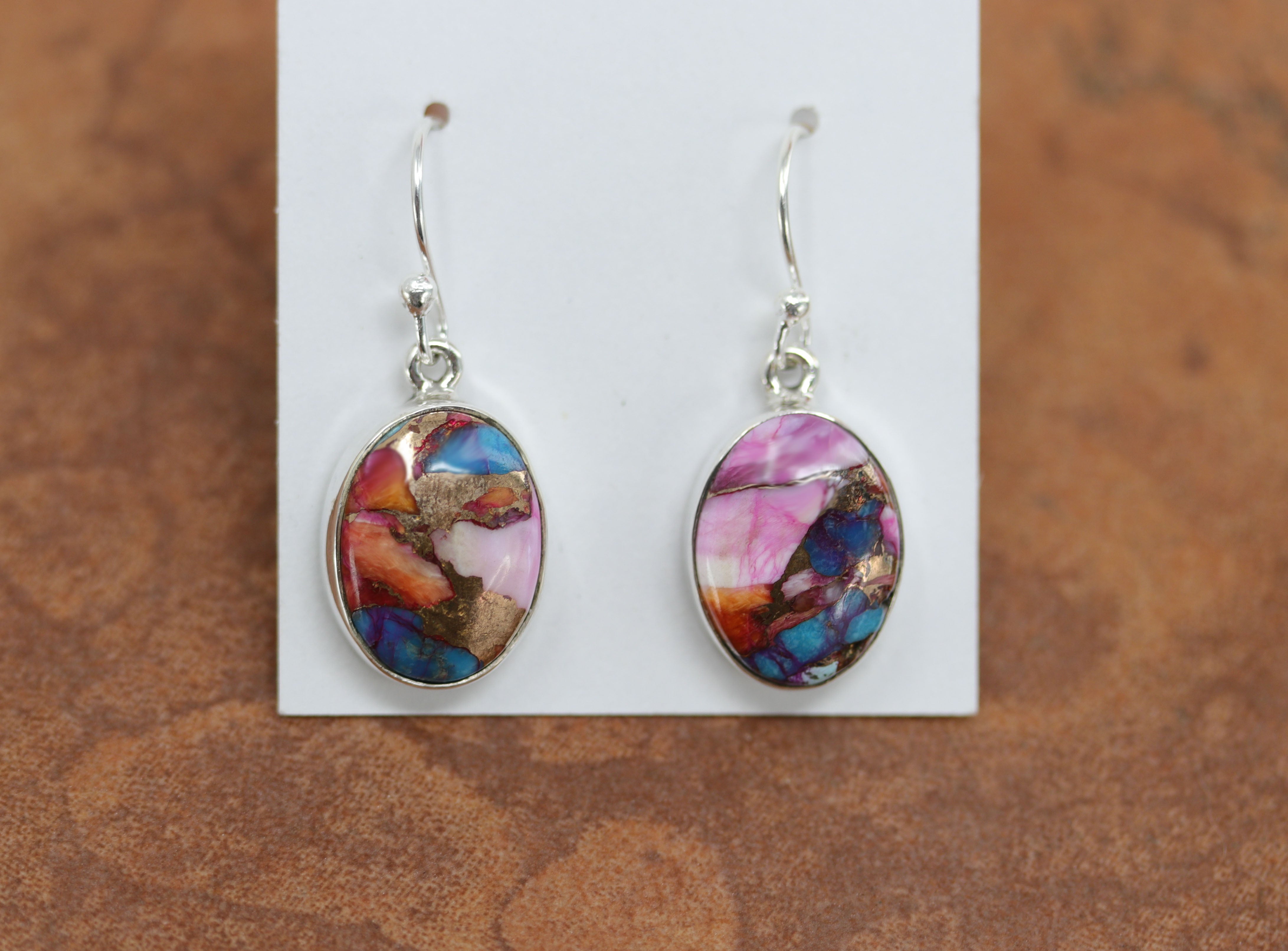 The hooks are made from sterling silver. The earrings are about 1 1/4" in length including the hook, and 5/8" in width. This item is not Native American.