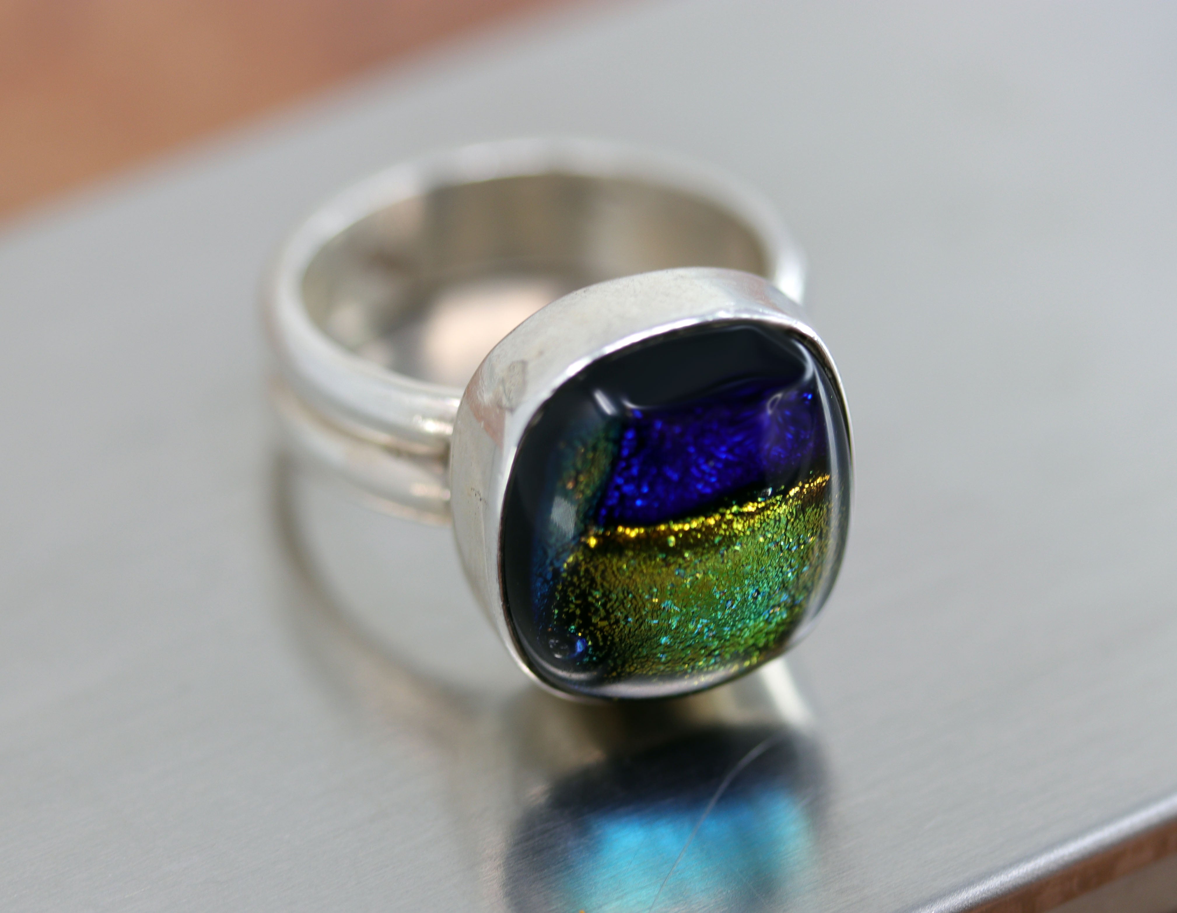 Sterling Silver Rainbow Dichroic Glass Ring Size 6 1/2