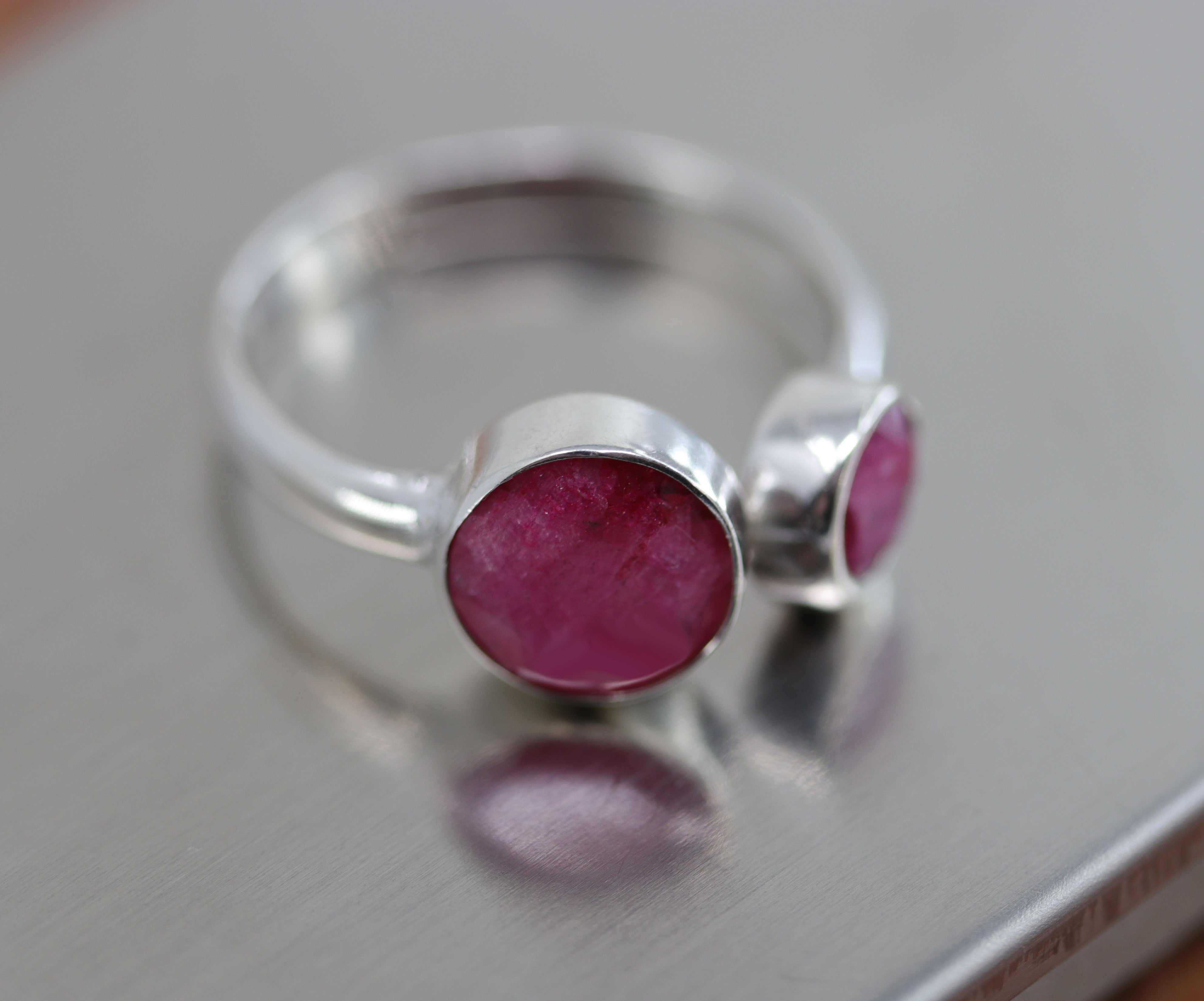 A beautiful Southwest Style gemstone ring made from sterling silver and ruby. The ring size is 6-7 and it is 3/8" in length. This item is not Native American.