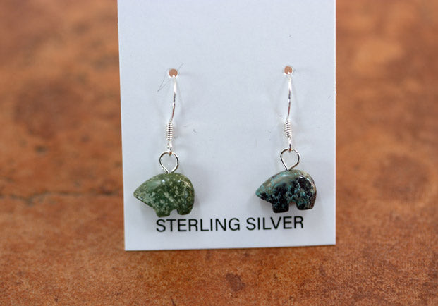 The hooks are made from sterling silver. The earrings are about 1" in length including the hook, and 5/8" in width. This item is from our Southwest Style category, it is not Native American made.