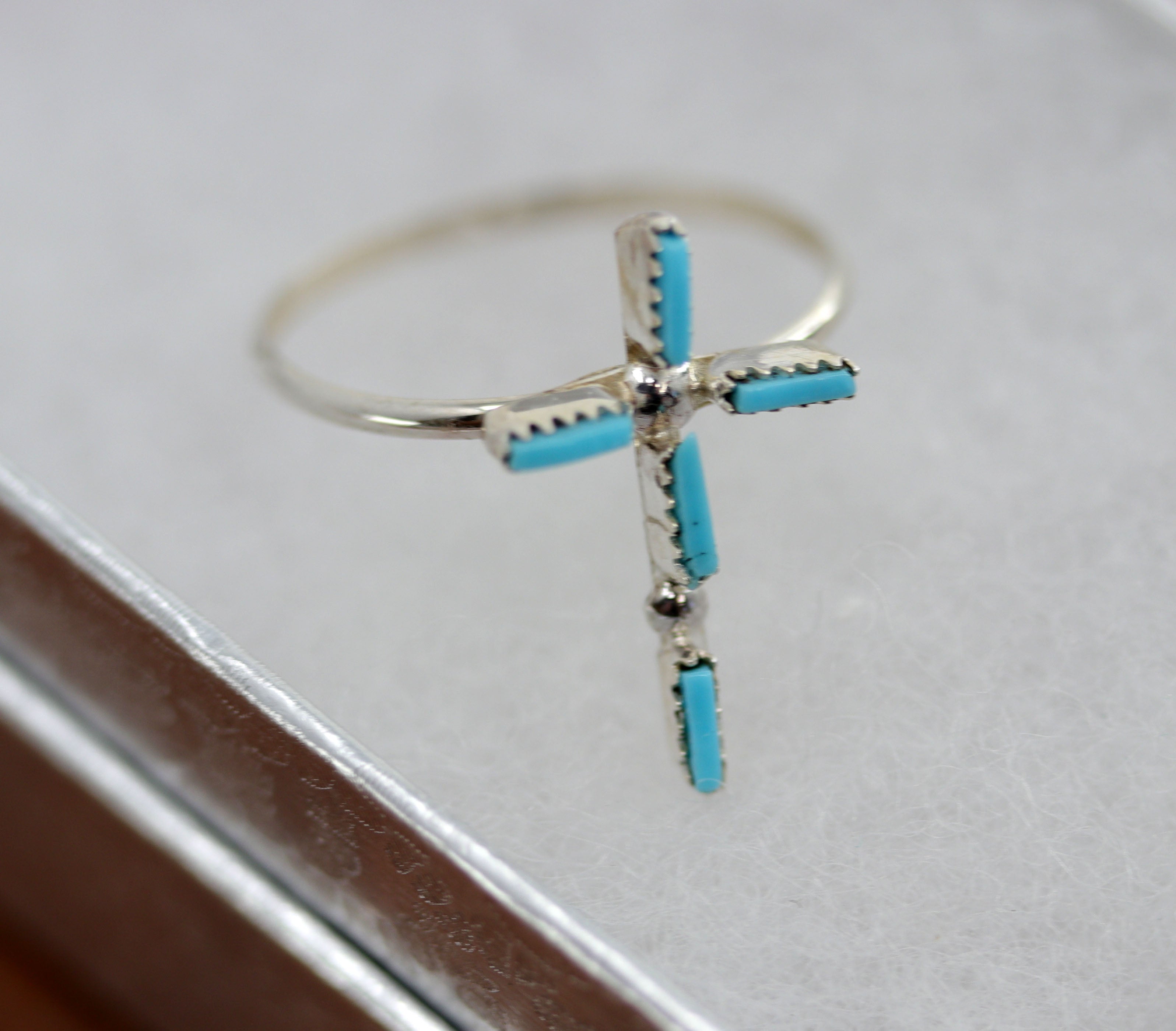 Zuni Silver Turquoise Cross Ring Size 8 1/2