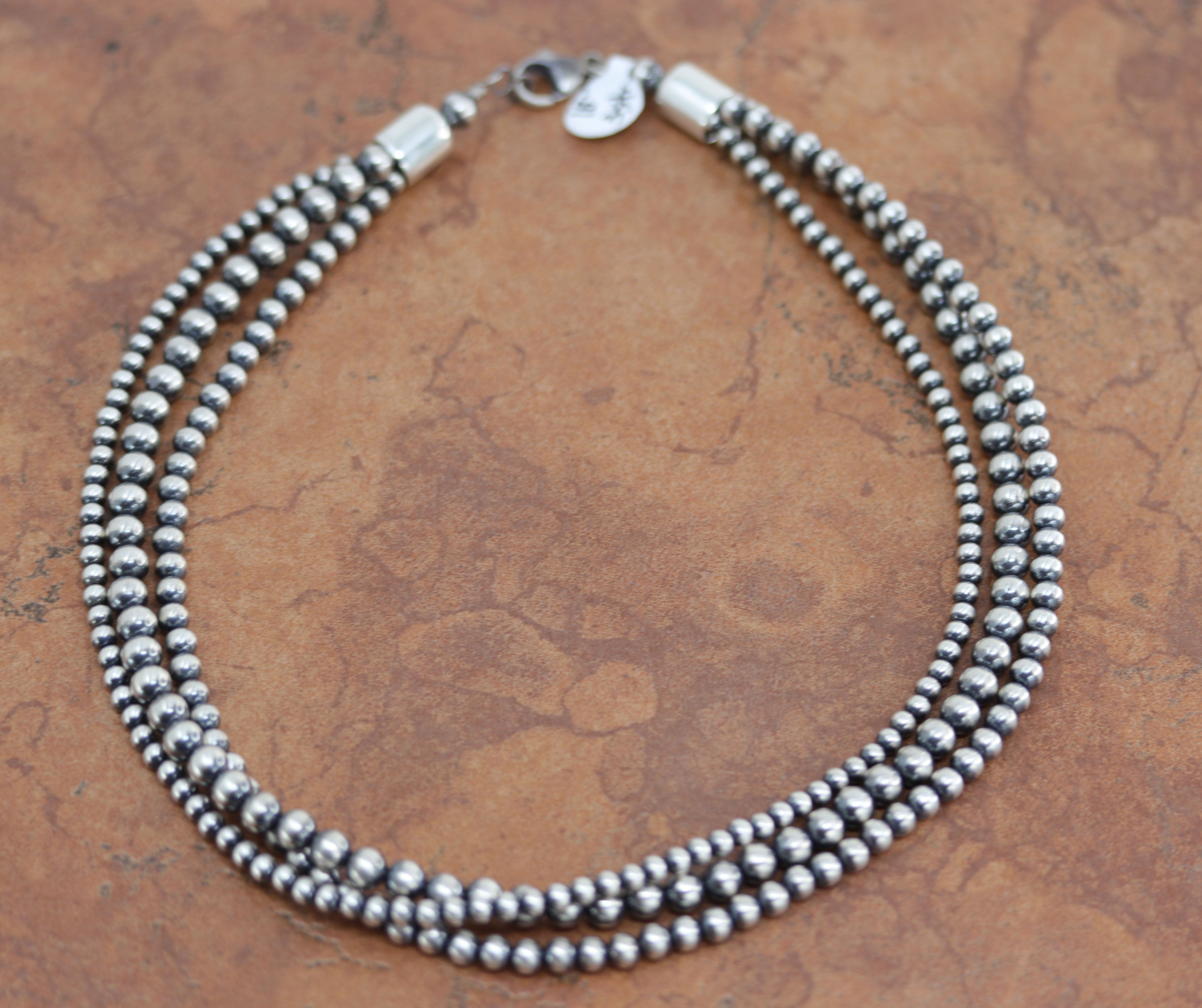 18" Navajo Pearl 3 Strand Silver Beaded Necklace