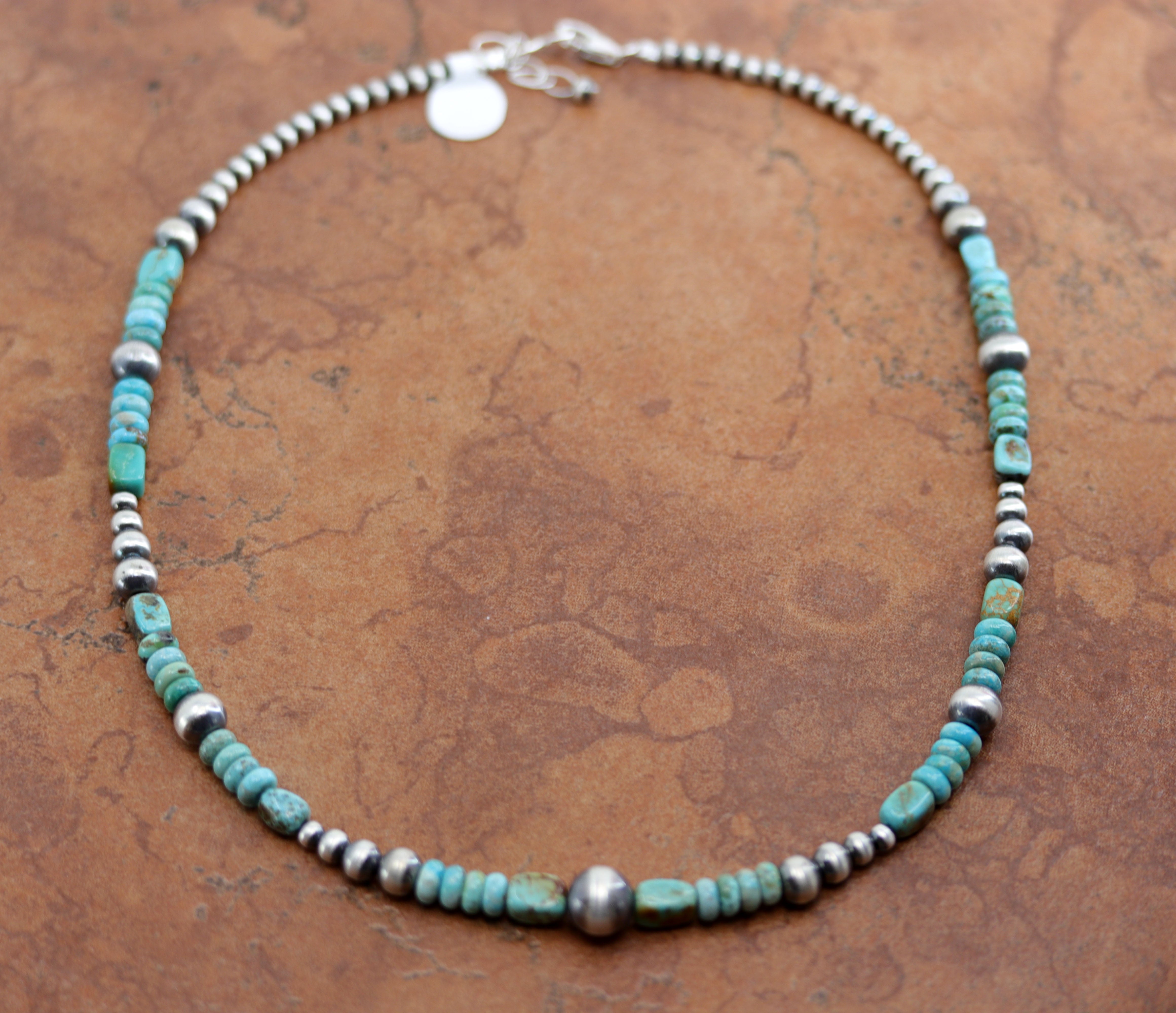 20" Navajo Pearl Silver Heishi Turquoise Necklace