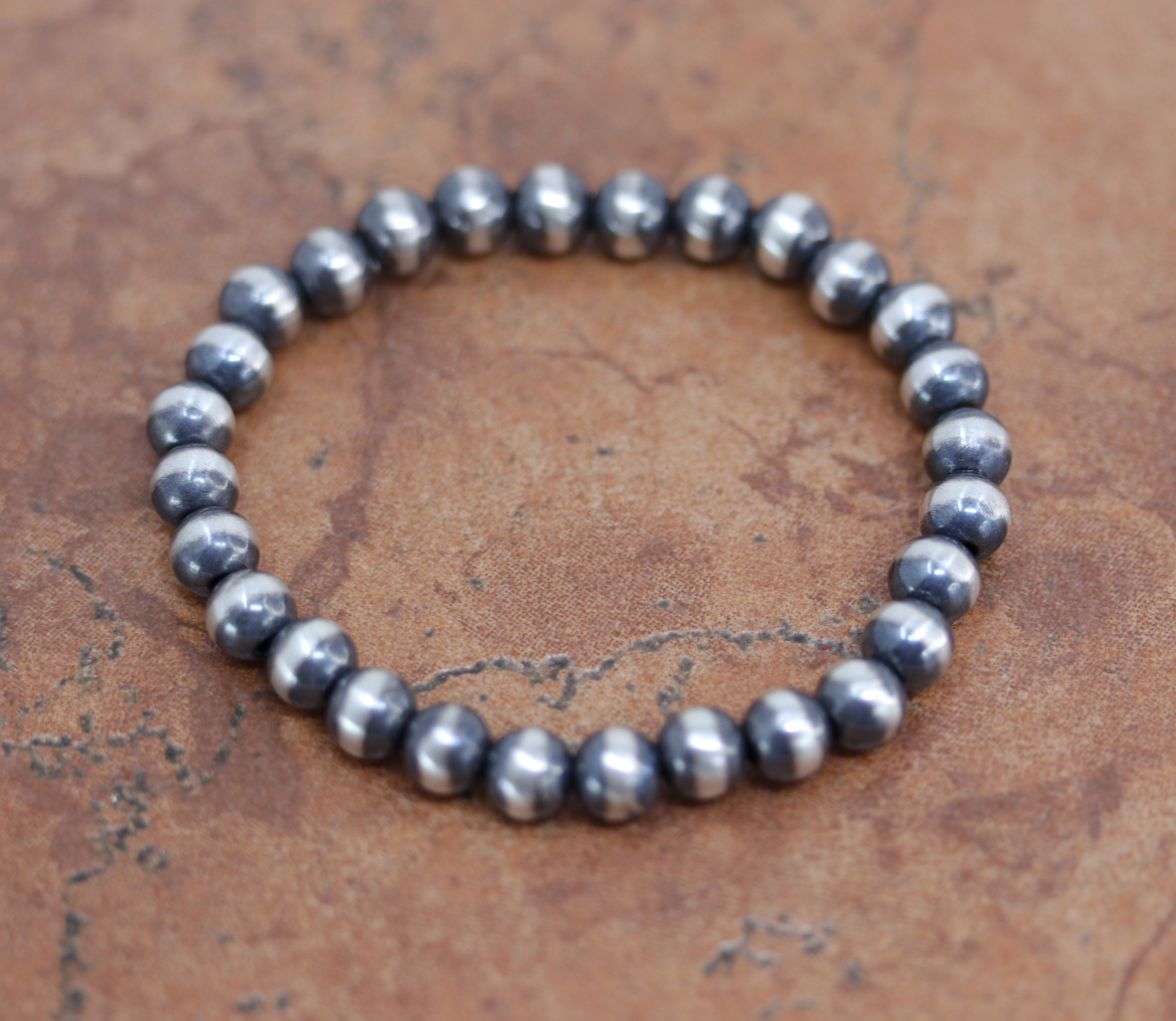 5 mm Navajo Pearl Silver Beaded Bracelet