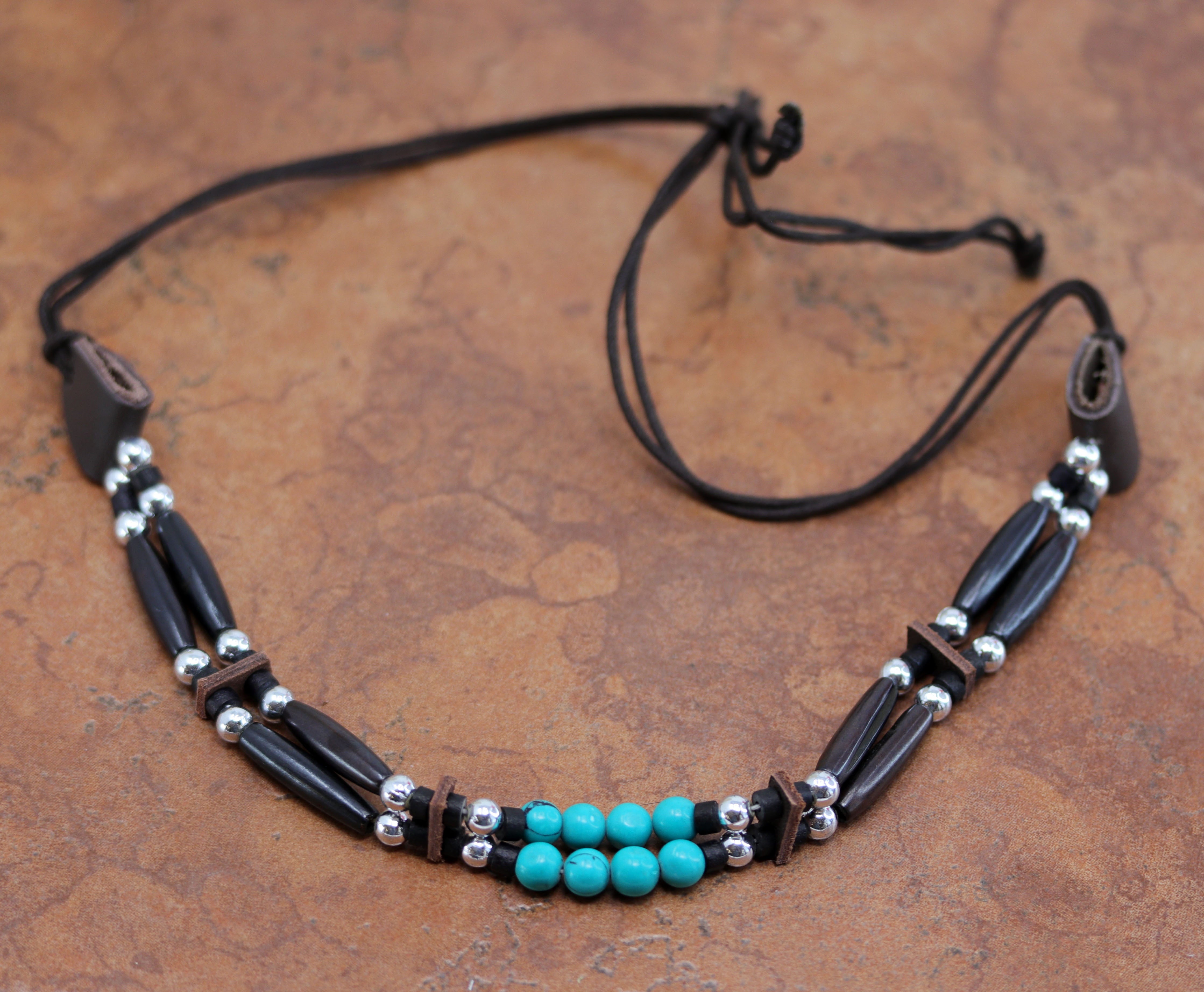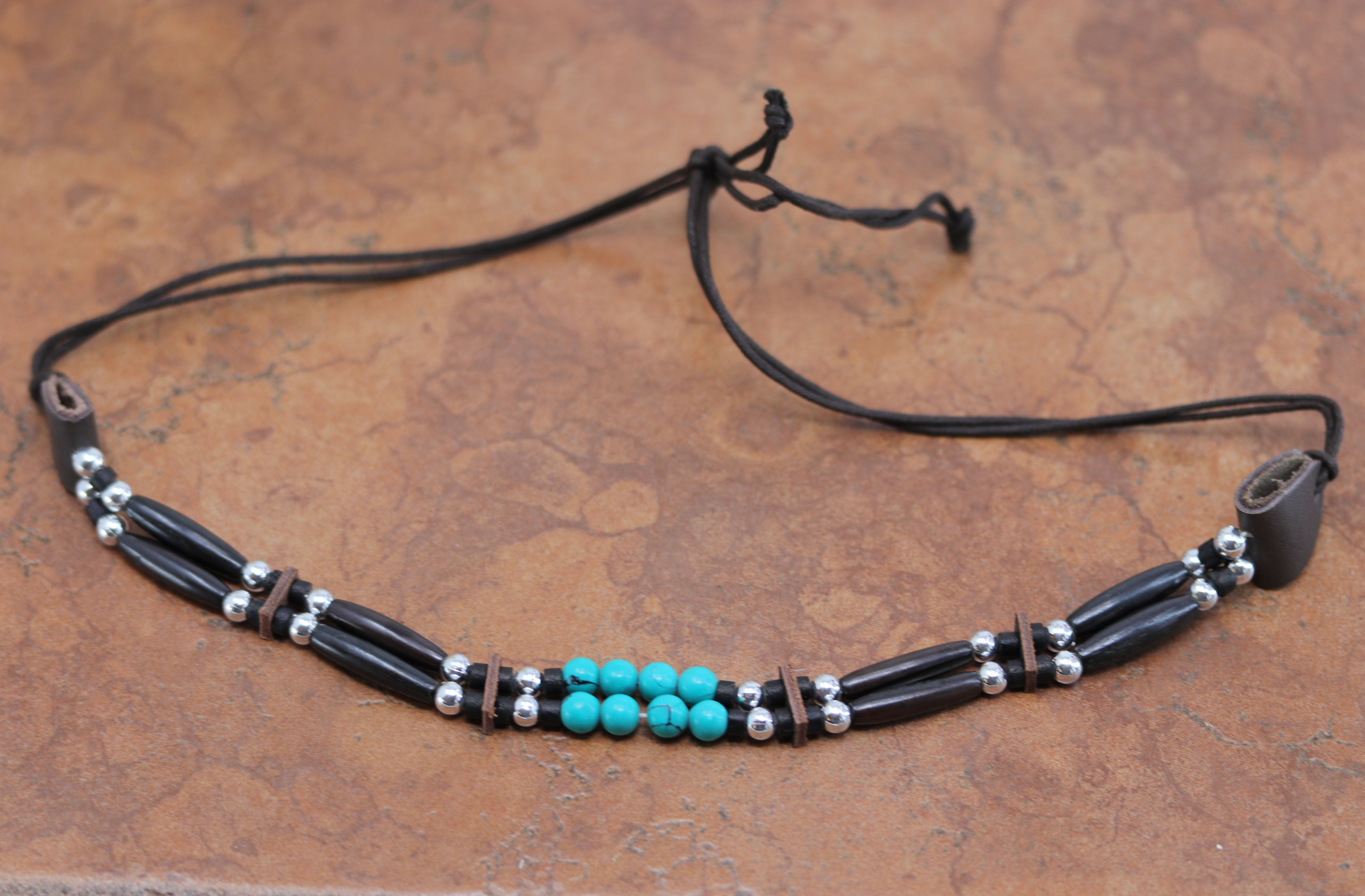 The design is about 11" from end to end, and it has adjustable strings so it can fit most sizes. The width measures 5/8". This item is not Native American.