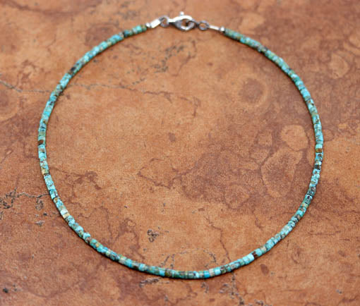 A beautiful silver Cowgirl Desert Pearl choker necklace. The necklace is 16" in length and the beads measure 1/8" in width. This item is not Native American.