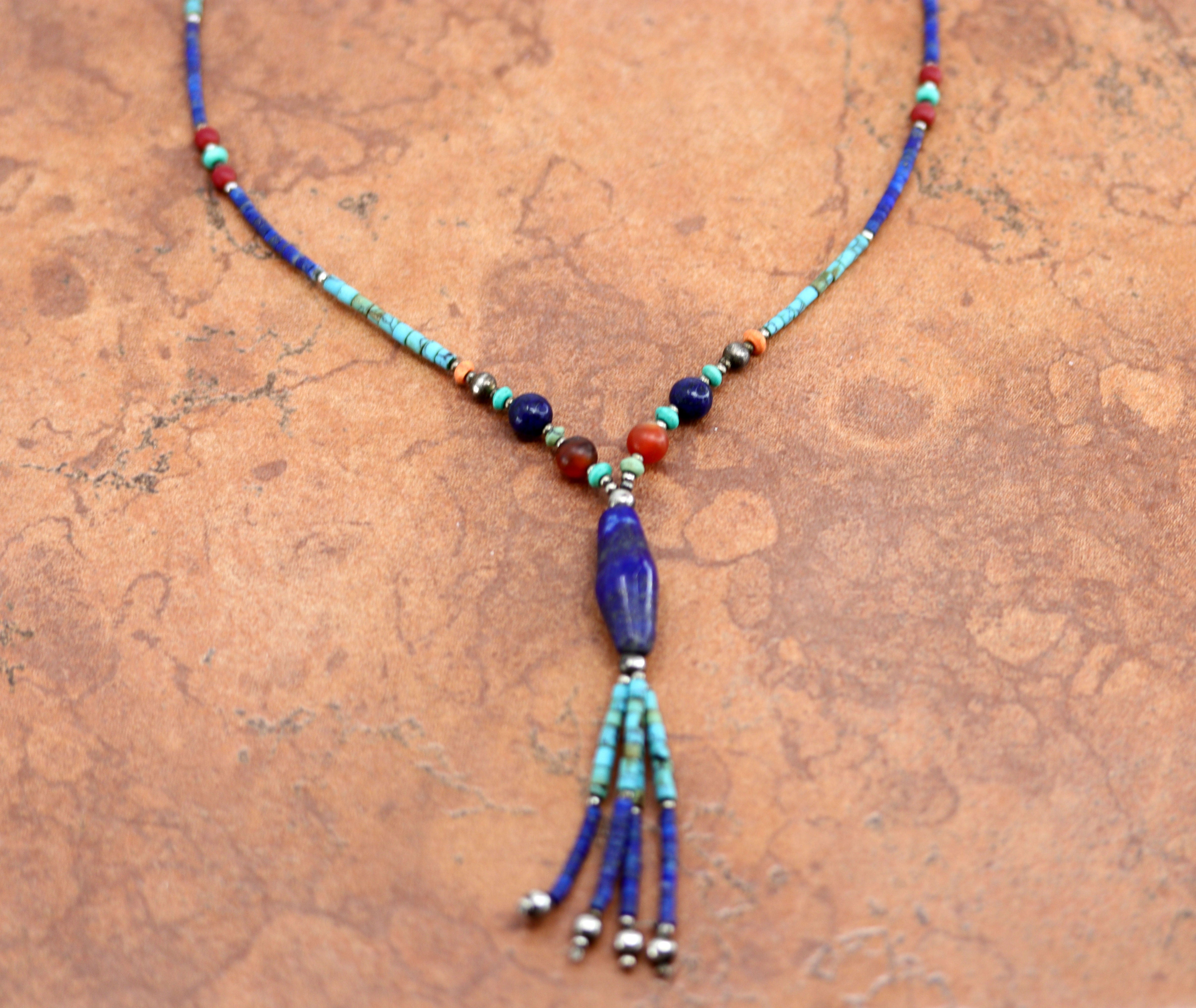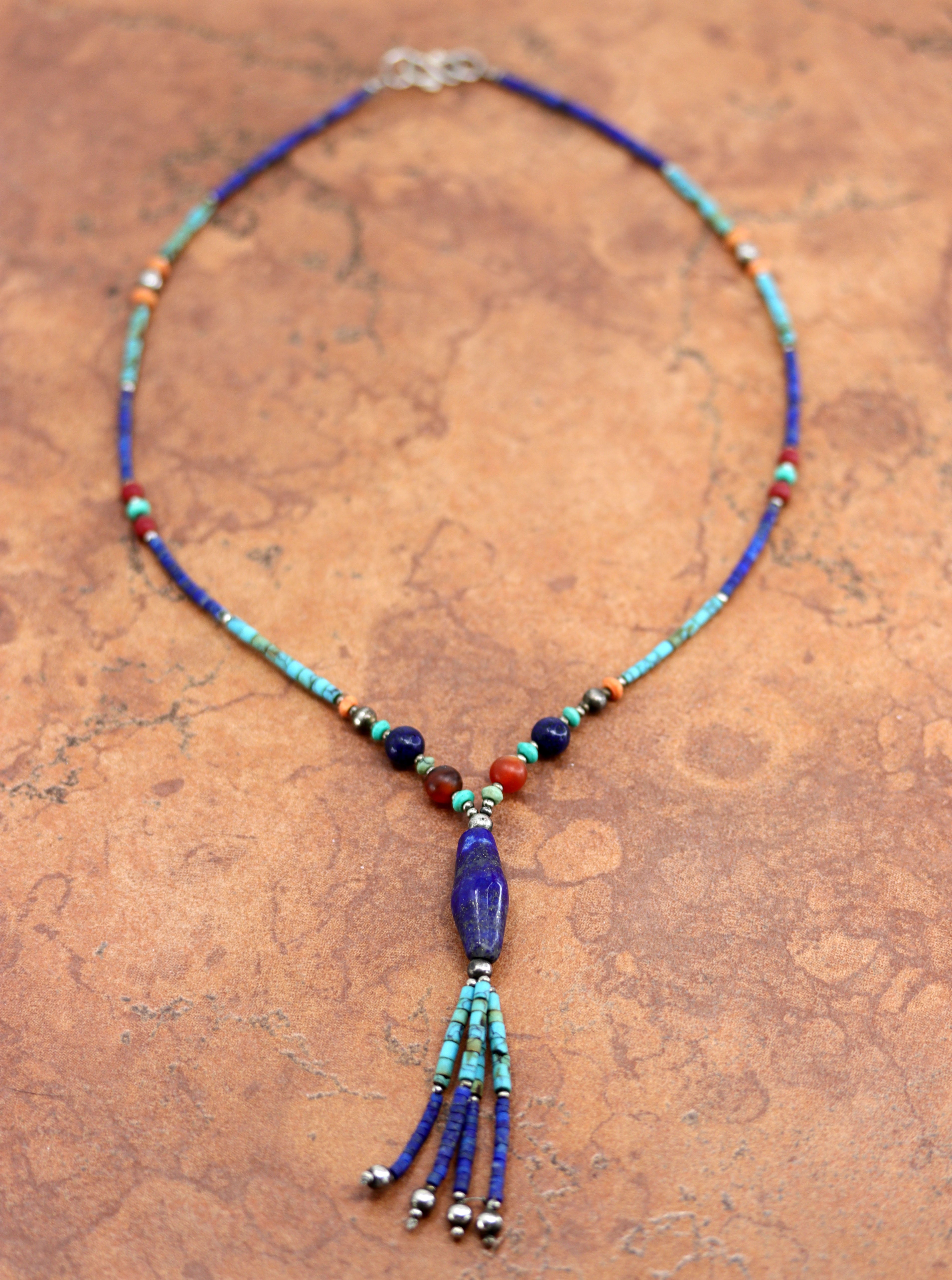 Lapis Heishi Multi-Stone Nugget Tassel Necklace