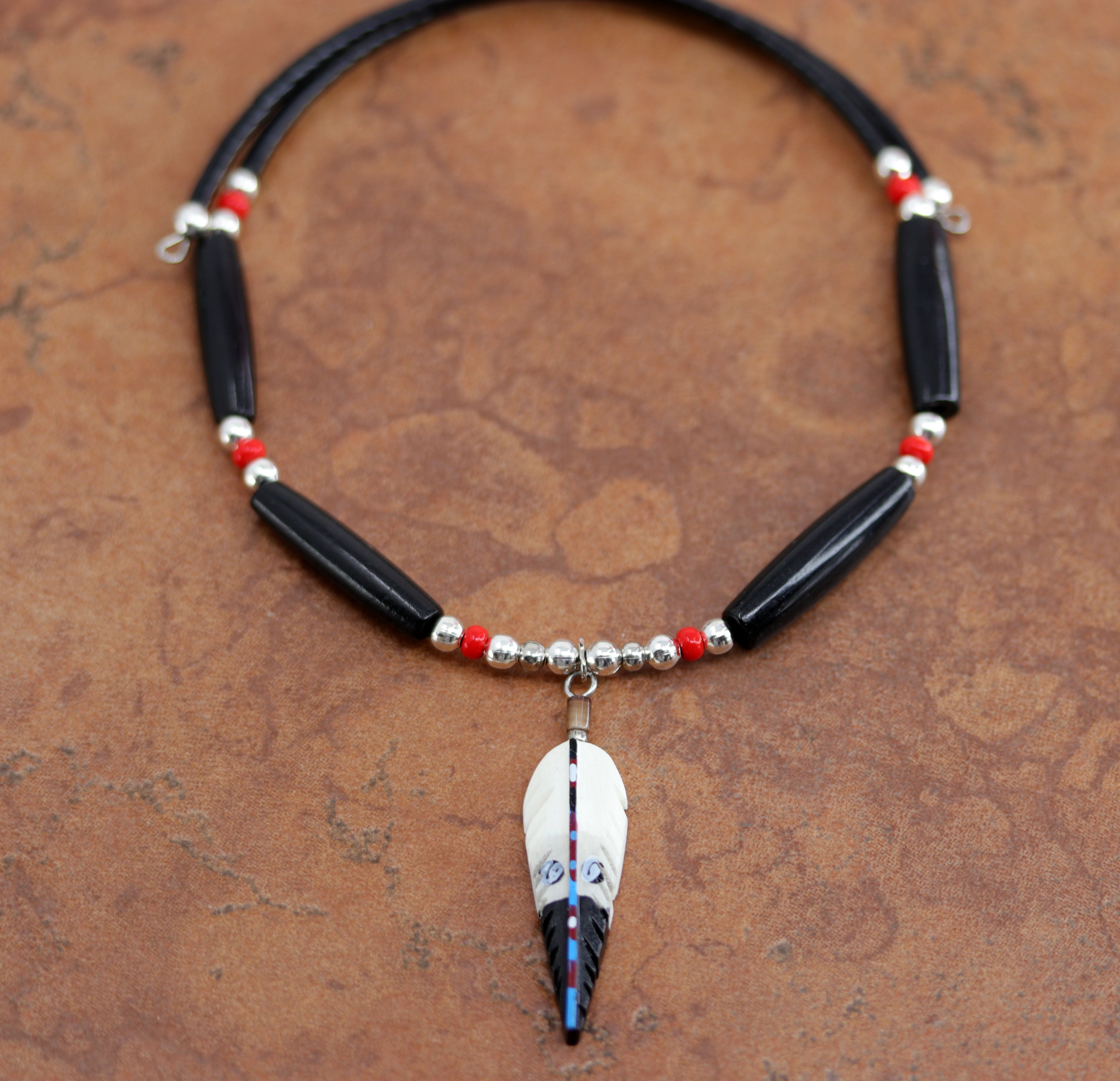 Navajo Beaded Bone Choker Feather Necklace