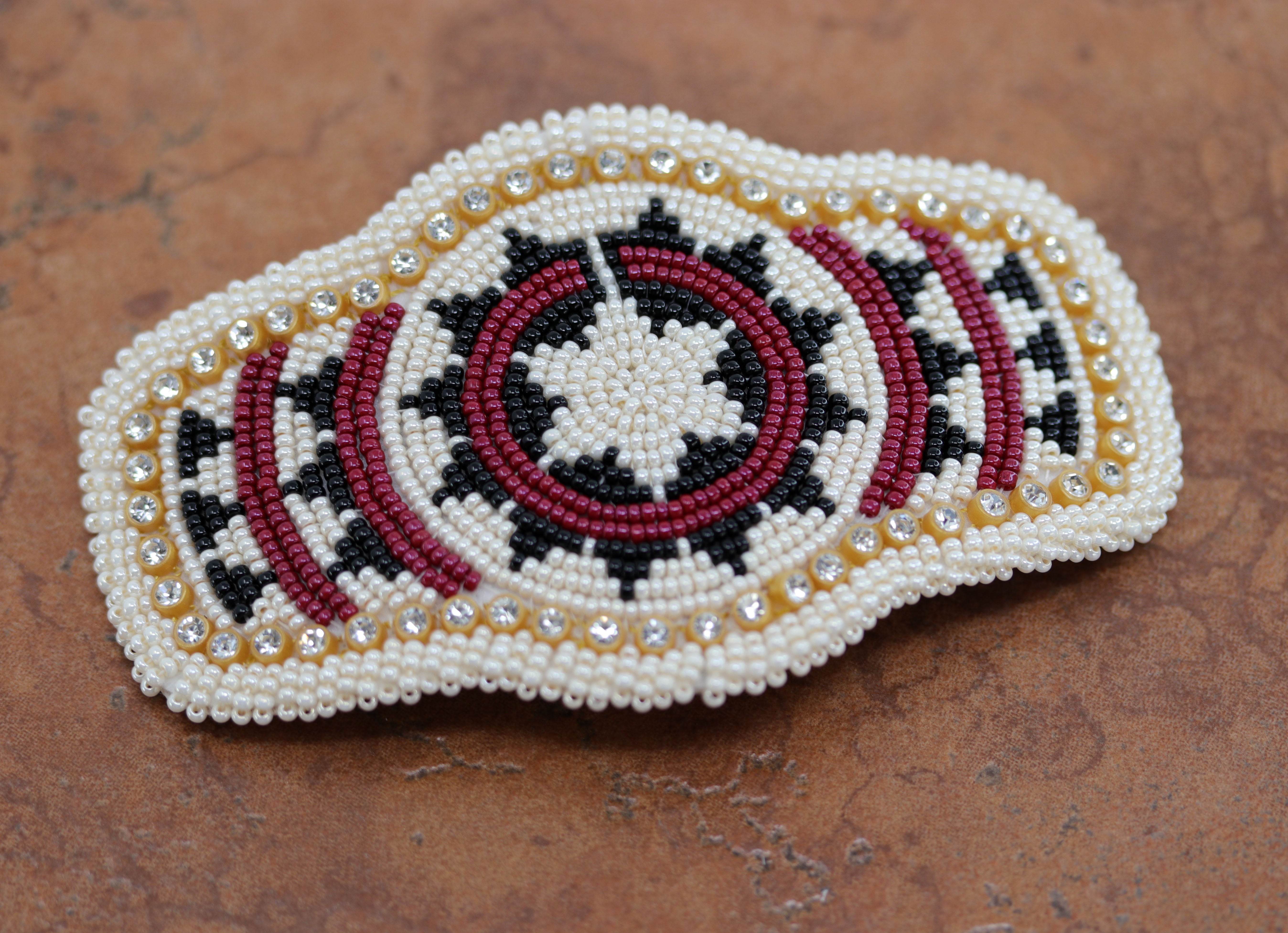 Navajo Native American Beaded Barrette made from stainless steel, leather, and beads. It is 3" long, and about 5" wide.