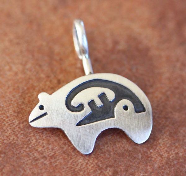 Navajo Native American Indian Pendant. It is made from sterling silver. It is about 1" in length including the bail and 3/4" in width. It is stamped Sterling.