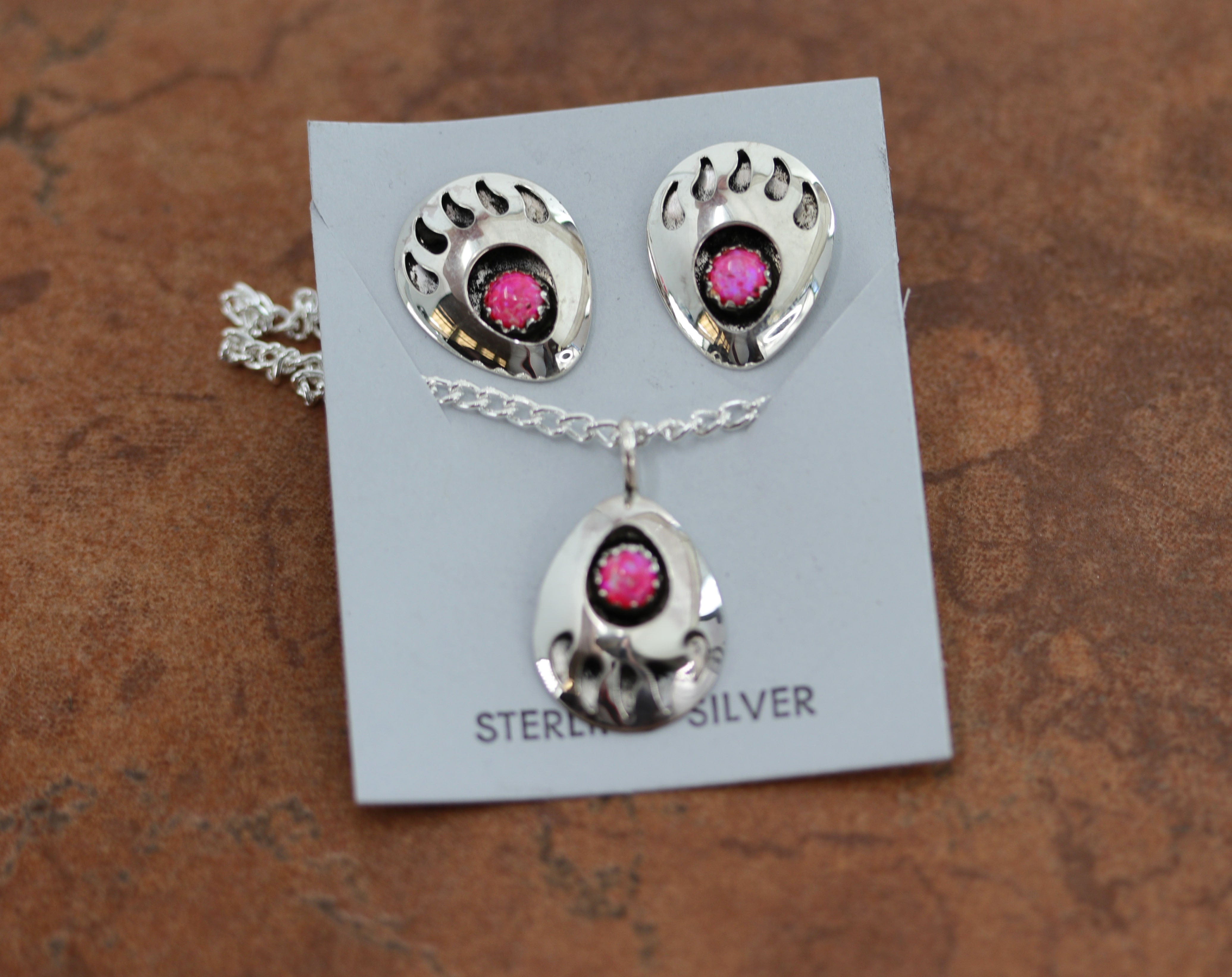 Navajo Created Opal Bear Paw Necklace and Earrings Set