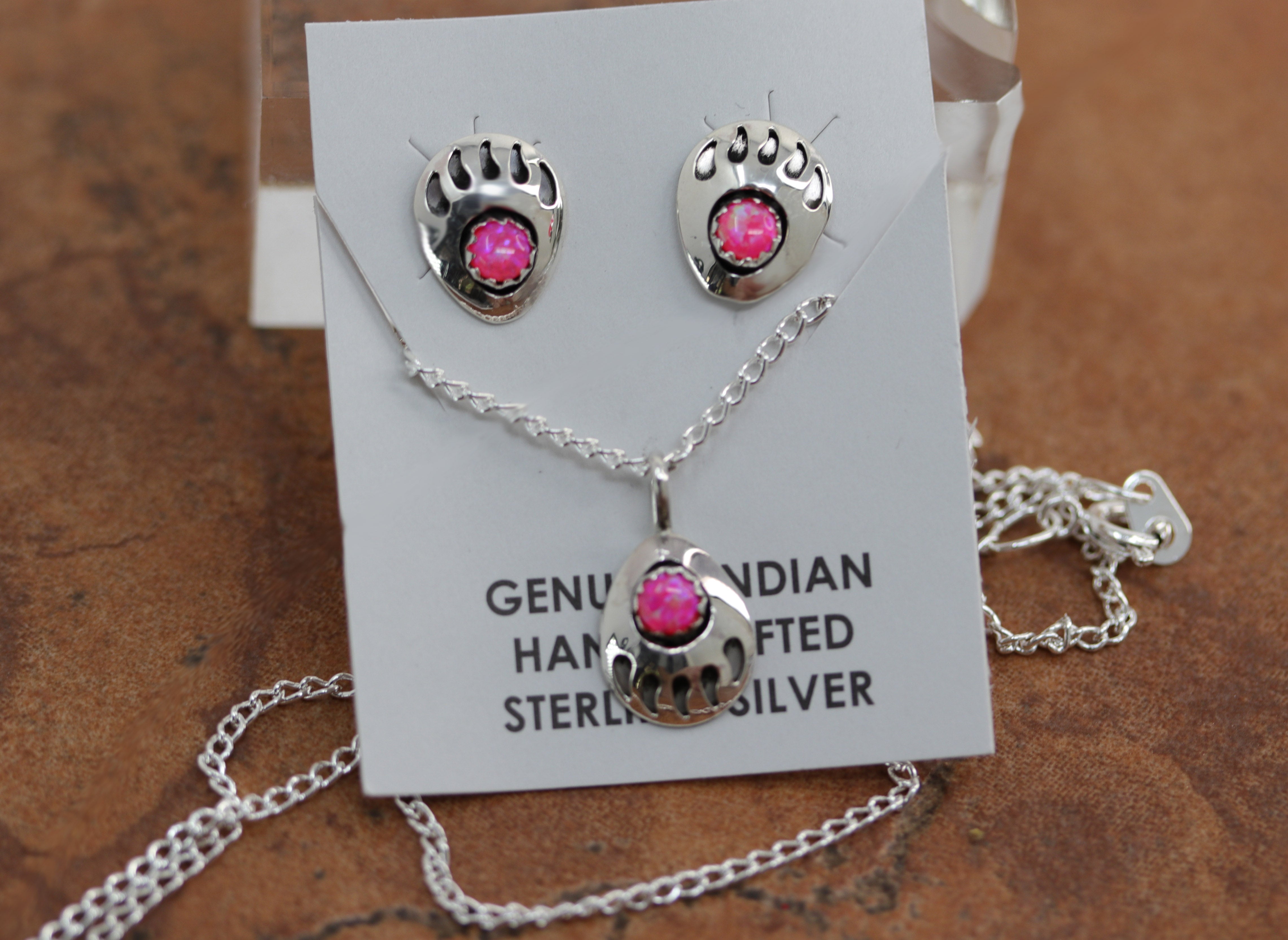 Navajo Created Opal Bear Paw Necklace Earrings Set