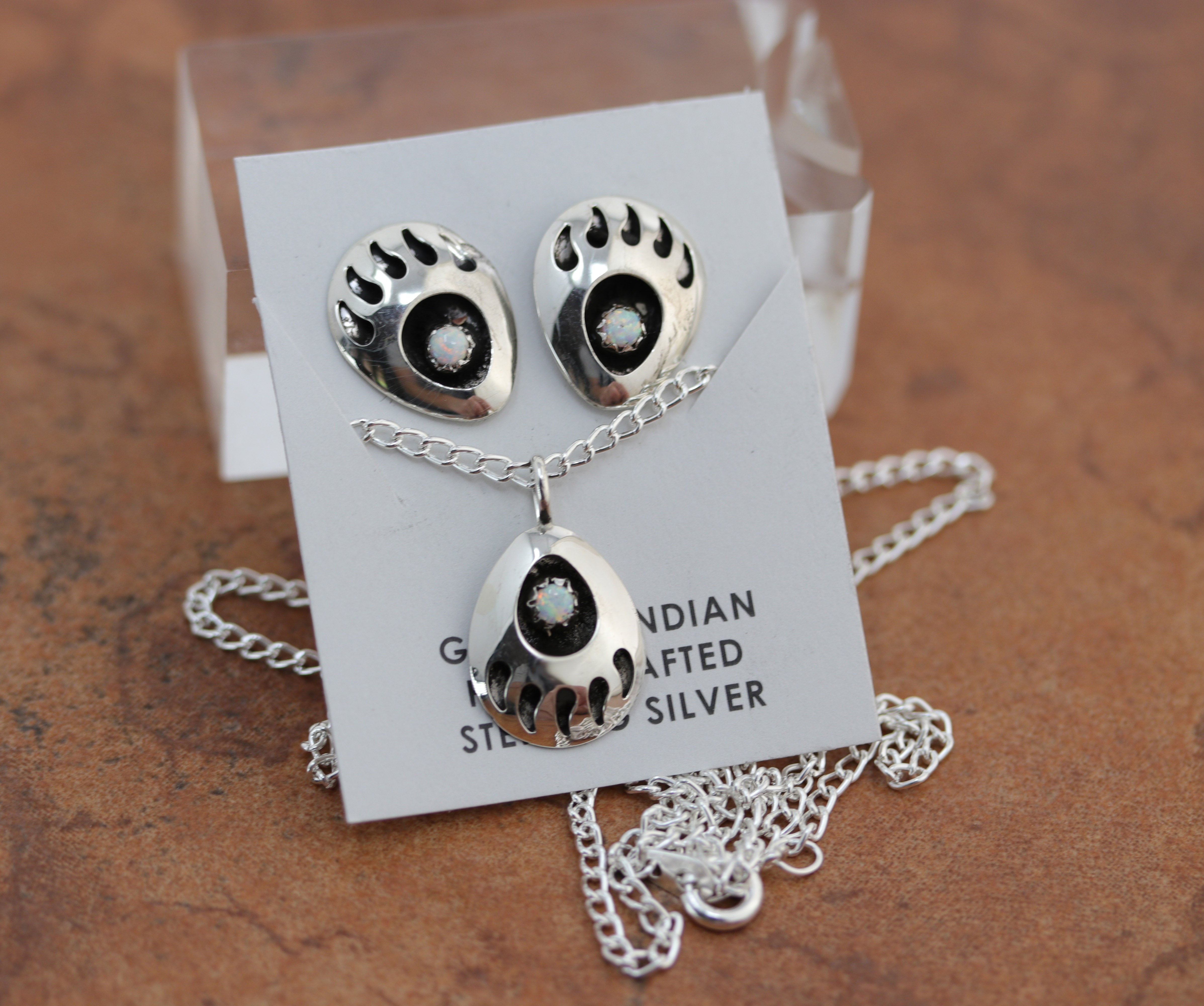 Navajo Created Opal Bear Paw Necklace Earrings Set