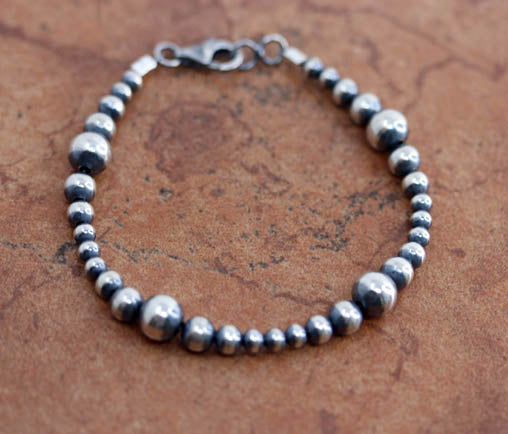 A beautiful Cowgirl Desert Pearl style bracelet. It is about 8" from end to end and the width is 4 to 8 mm. It is made from sterling silver. This item is not Native American.