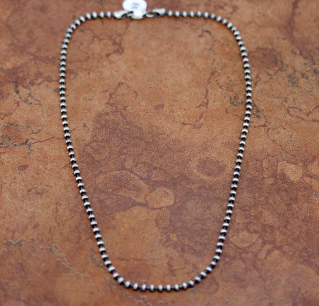22" 3mm Navajo Pearl Silver Beaded Necklace