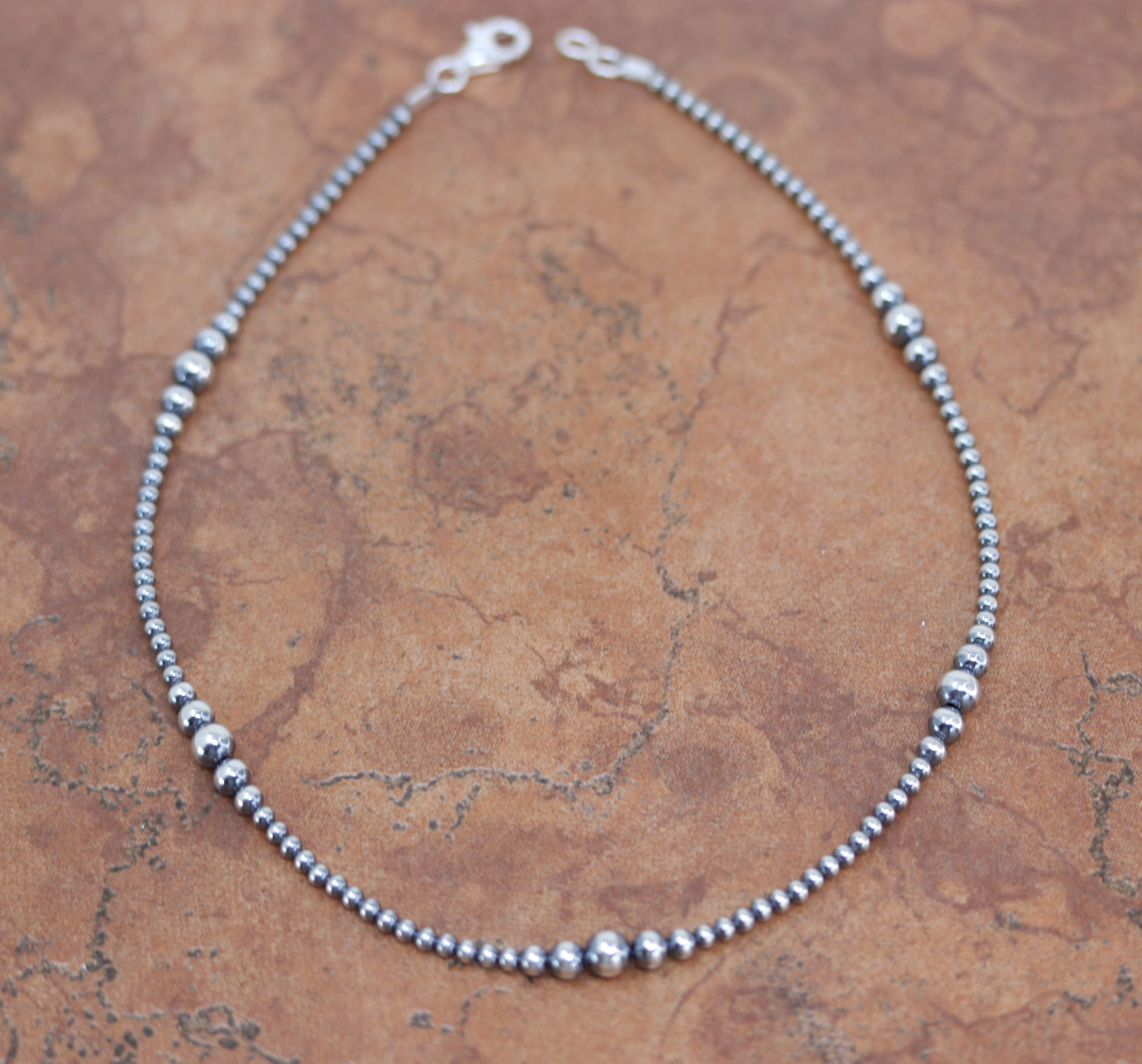16" 4-8mm Desert Pearl Silver Beaded Necklace