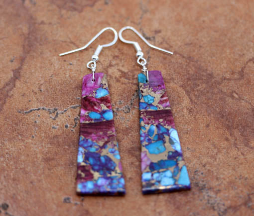 Navajo earrings by Jameson Pete. The earrings are about 2 3/4" in length including the hook, and 5/8" in width.