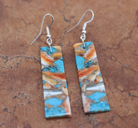 Navajo earrings by Jameson Pete. The earrings are about 2 3/4" in length including the hook, and 5/8" in width.